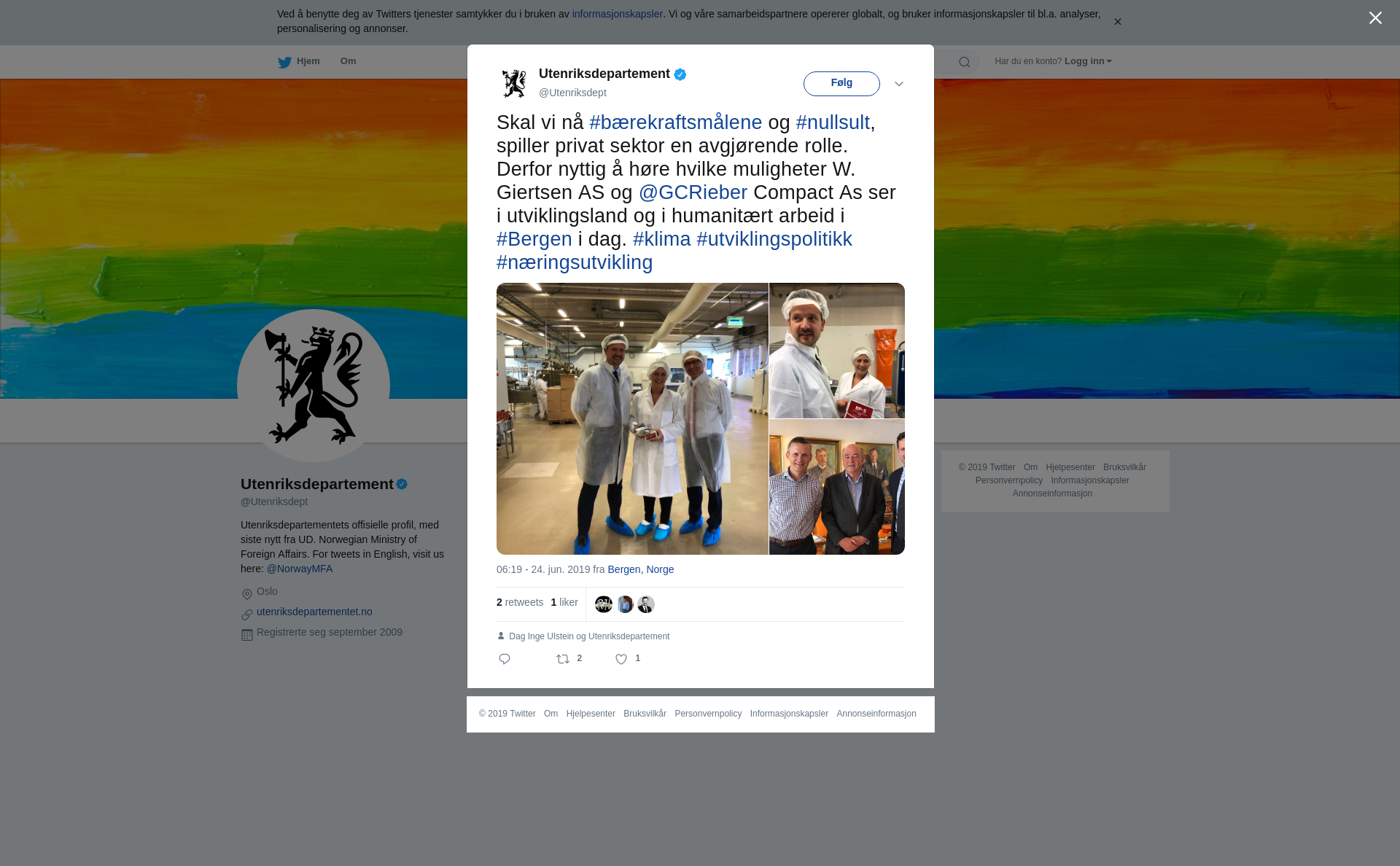 RT @Utenriksdept: Skal vi nå #bærekraftsmålene og #nullsult, spiller privat sektor en avgjørende rolle. Derfor nyttig å høre hvilke muligheter W. Giertsen AS og @GCRieber Compact As ser i utviklingsland og i humanitært arbeid i #Bergen i dag. #klima #utviklingspolitikk #næringsutvikling https://t.co/4UgNwBKzMV