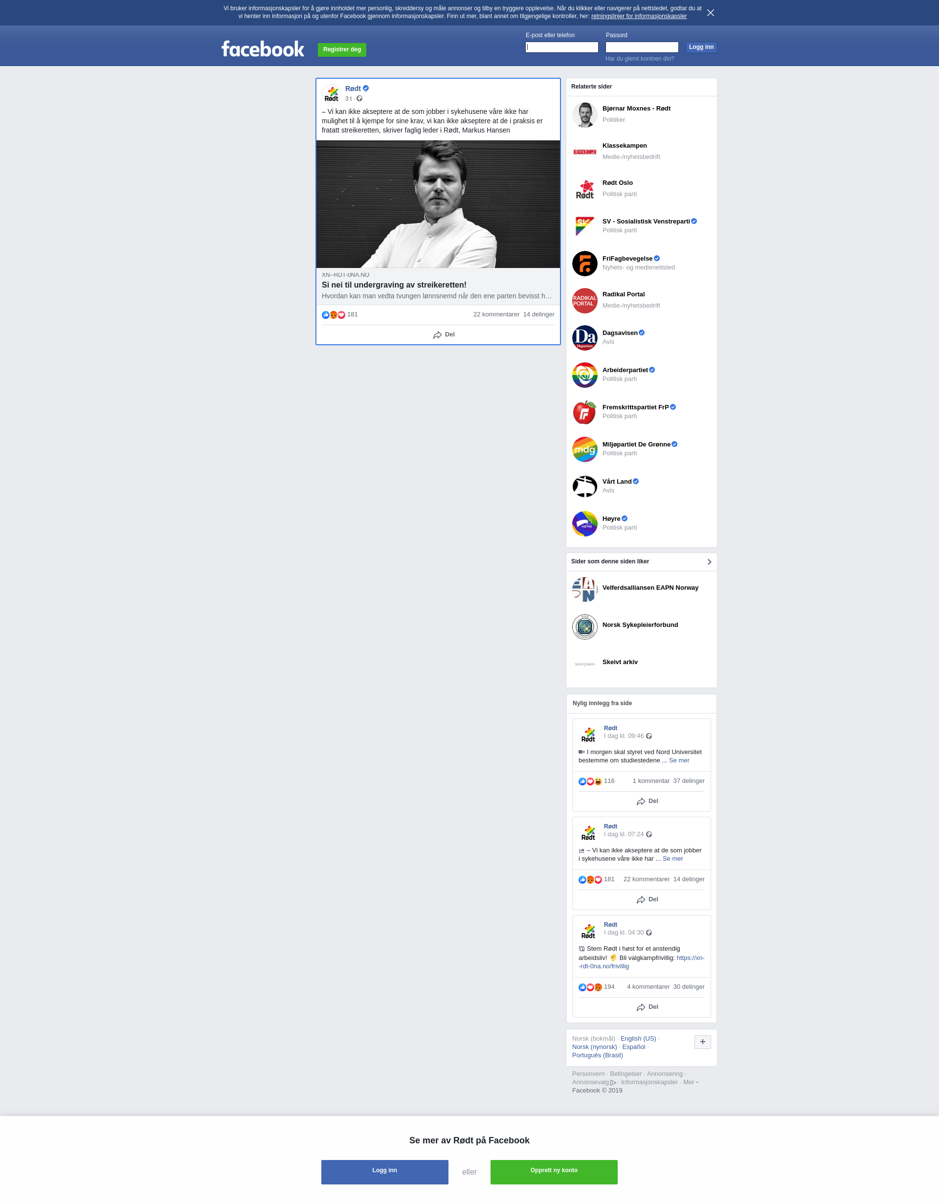 – Vi kan ikke akseptere at de som jobber i sykehusene våre ikke har mulighet til å kjempe for sine krav, vi kan ikke akseptere at de i praksis er fratatt streikeretten, skriver faglig leder i Rødt, Markus Hansen