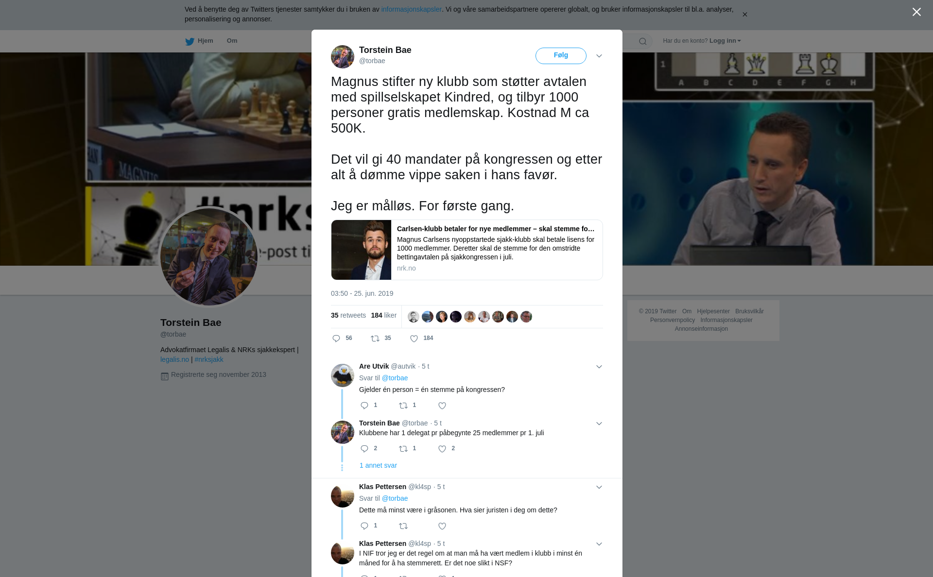 RT @torbae: Magnus stifter ny klubb som støtter avtalen med spillselskapet Kindred, og tilbyr 1000 personer gratis medlemskap. Kostnad M ca 500K.