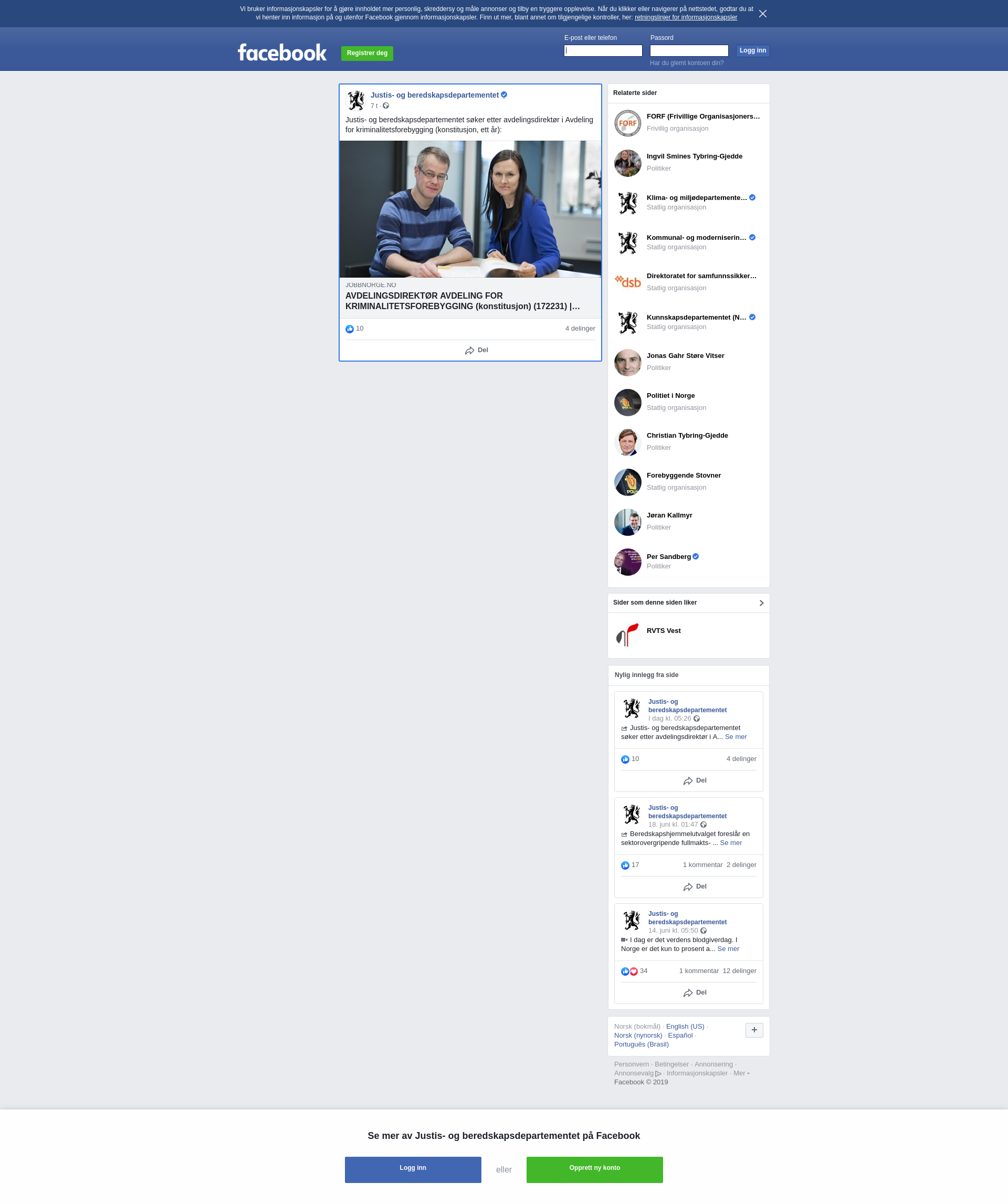 Stillingstittel: AVDELINGSDIREKTØR AVDELING FOR KRIMINALITETSFOREBYGGING (konstitusjon) (172231), Arbeidsgiver: Justis- og beredskapsdepartementet, Søknadsfrist: 4. juli 2019