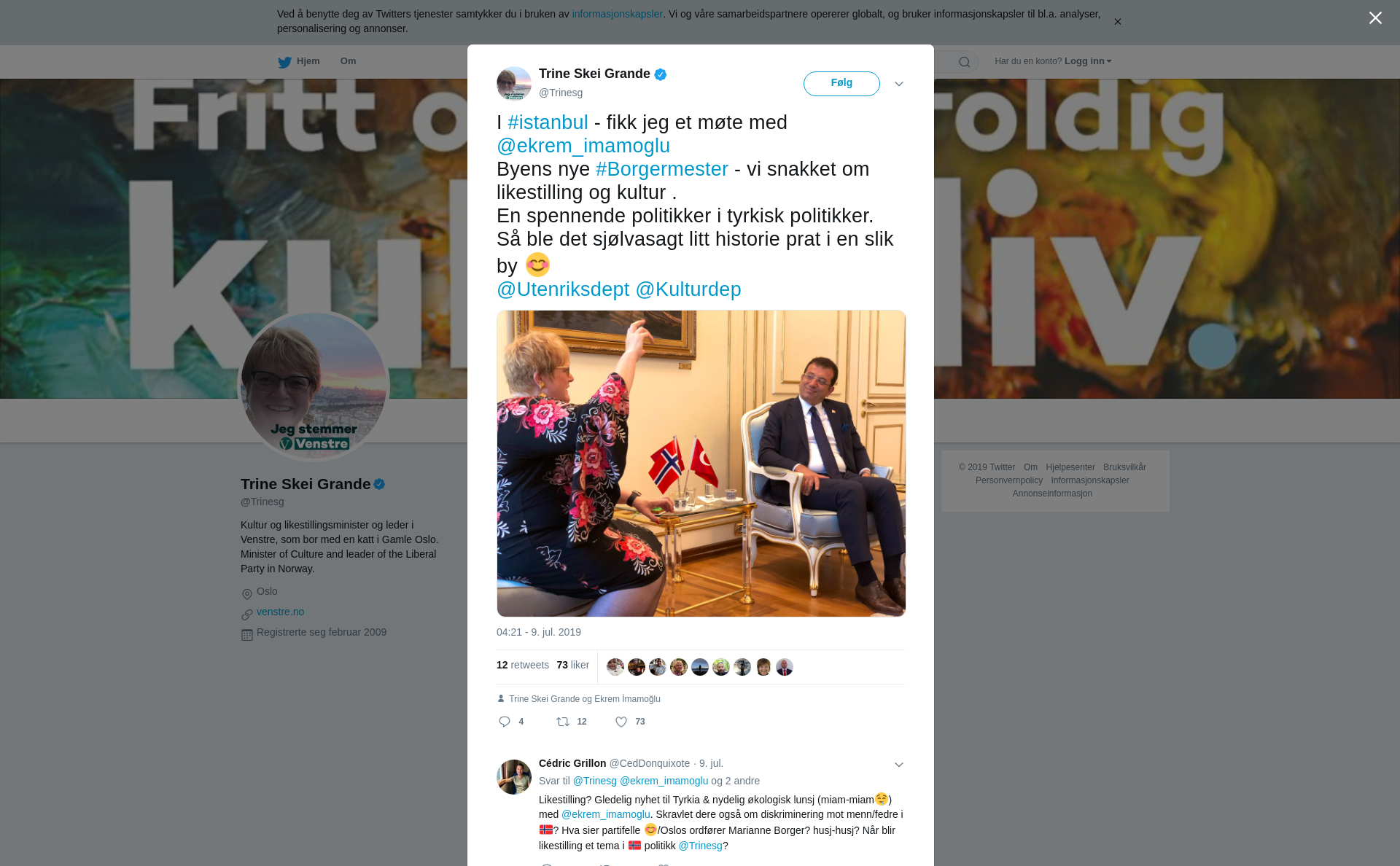 RT @Trinesg: I #istanbul - fikk jeg et møte med @ekrem_imamoglu Byens nye #Borgermester - vi snakket om likestilling og kultur . En spenne…