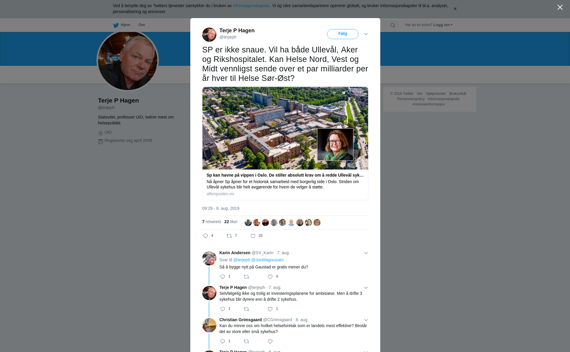RT @terjeph: SP er ikke snaue. Vil ha både Ullevål, Aker og Rikshospitalet. Kan Helse Nord, Vest og Midt vennligst sende over et par milliarder per år hver til Helse Sør-Øst? https://t.co/NdDFVk8Shk