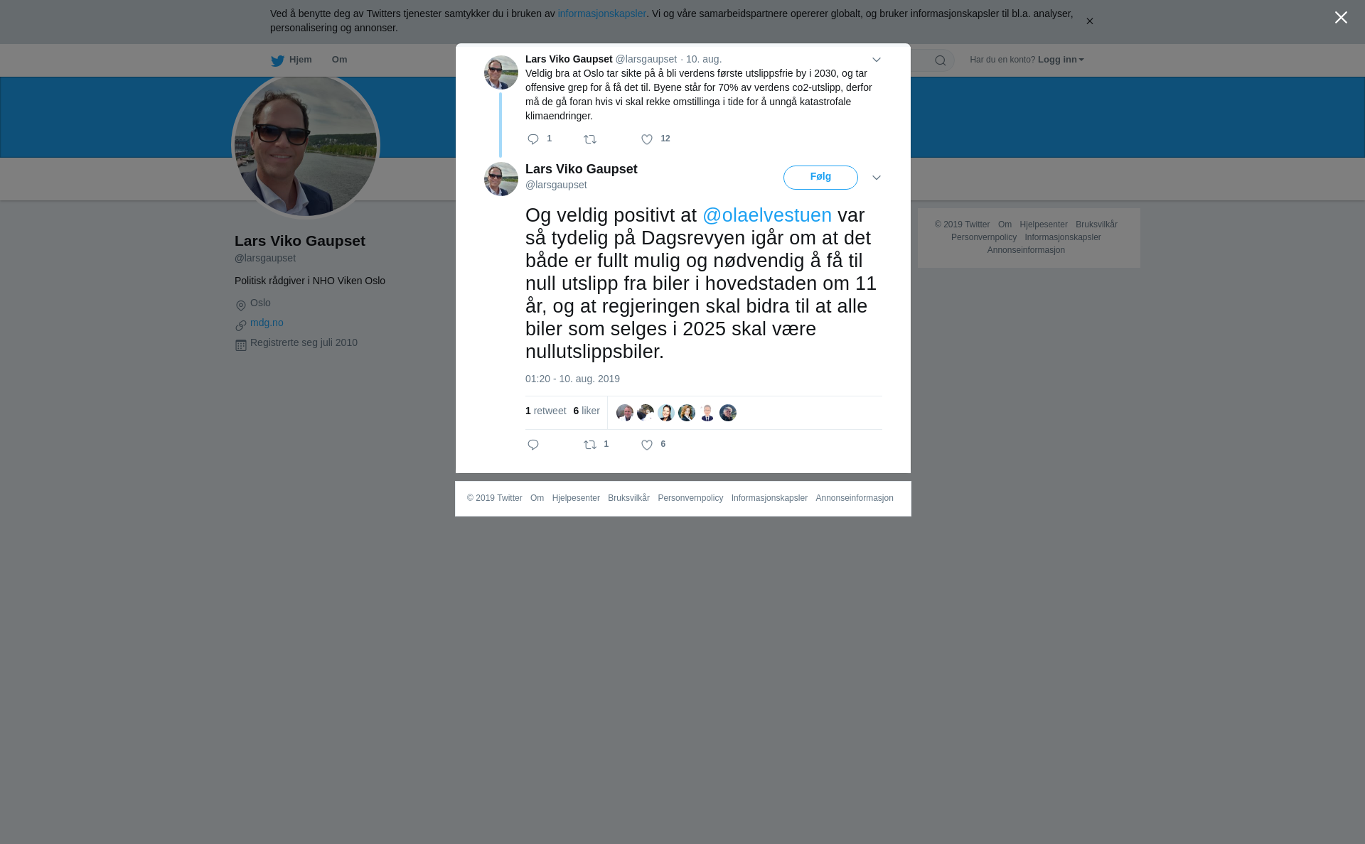 RT @larsgaupset: Og veldig positivt at @olaelvestuen var så tydelig på Dagsrevyen igår om at det både er fullt mulig og nødvendig å få til null utslipp fra biler i hovedstaden om 11 år, og at regjeringen skal bidra til at alle biler som selges i 2025 skal være nullutslippsbiler.