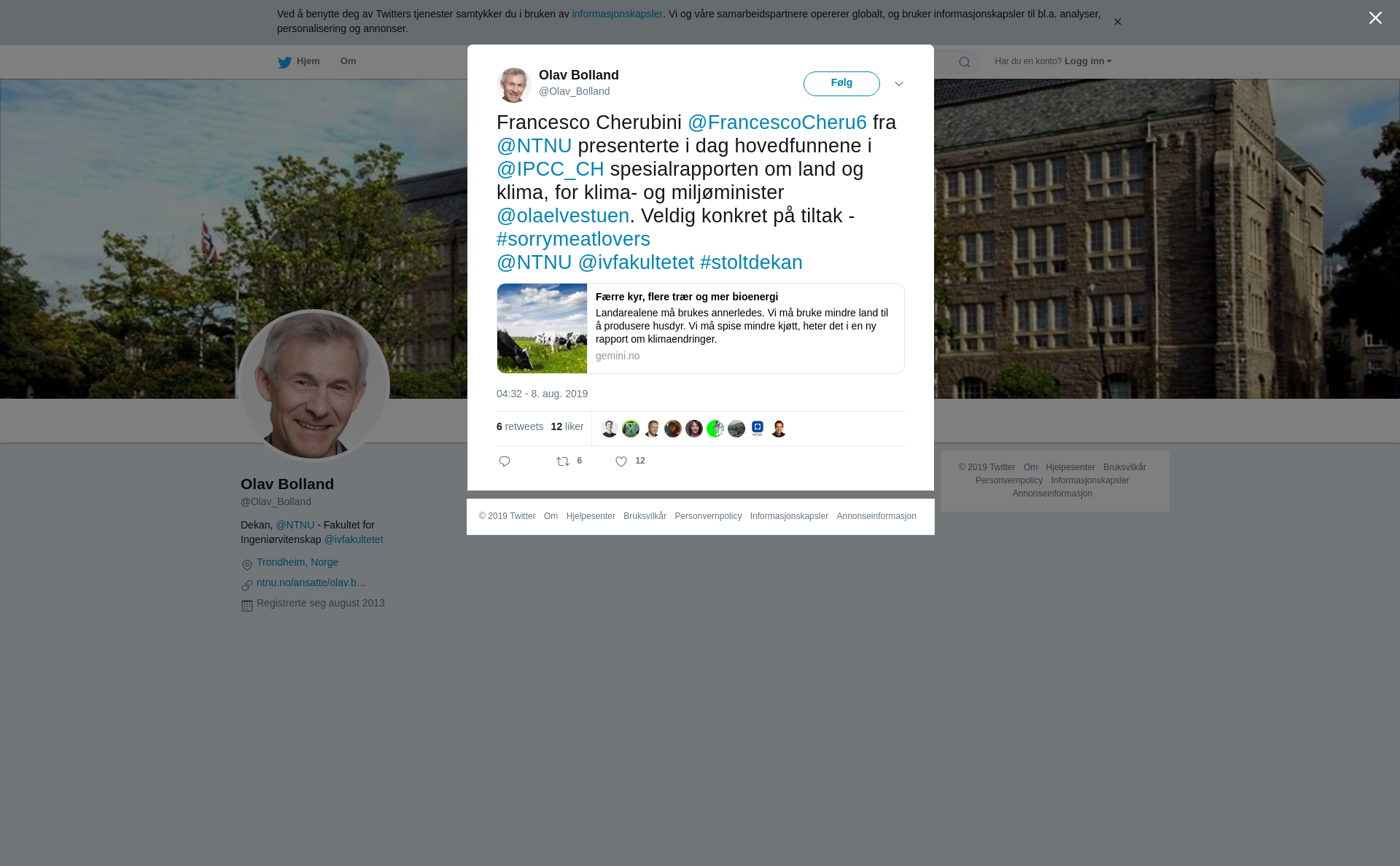 RT @Olav_Bolland: Francesco Cherubini @FrancescoCheru6 fra @NTNU presenterte i dag hovedfunnene i @IPCC_CH spesialrapporten om land og klima, for klima- og miljøminister @olaelvestuen. Veldig konkret på tiltak - #sorrymeatlovers