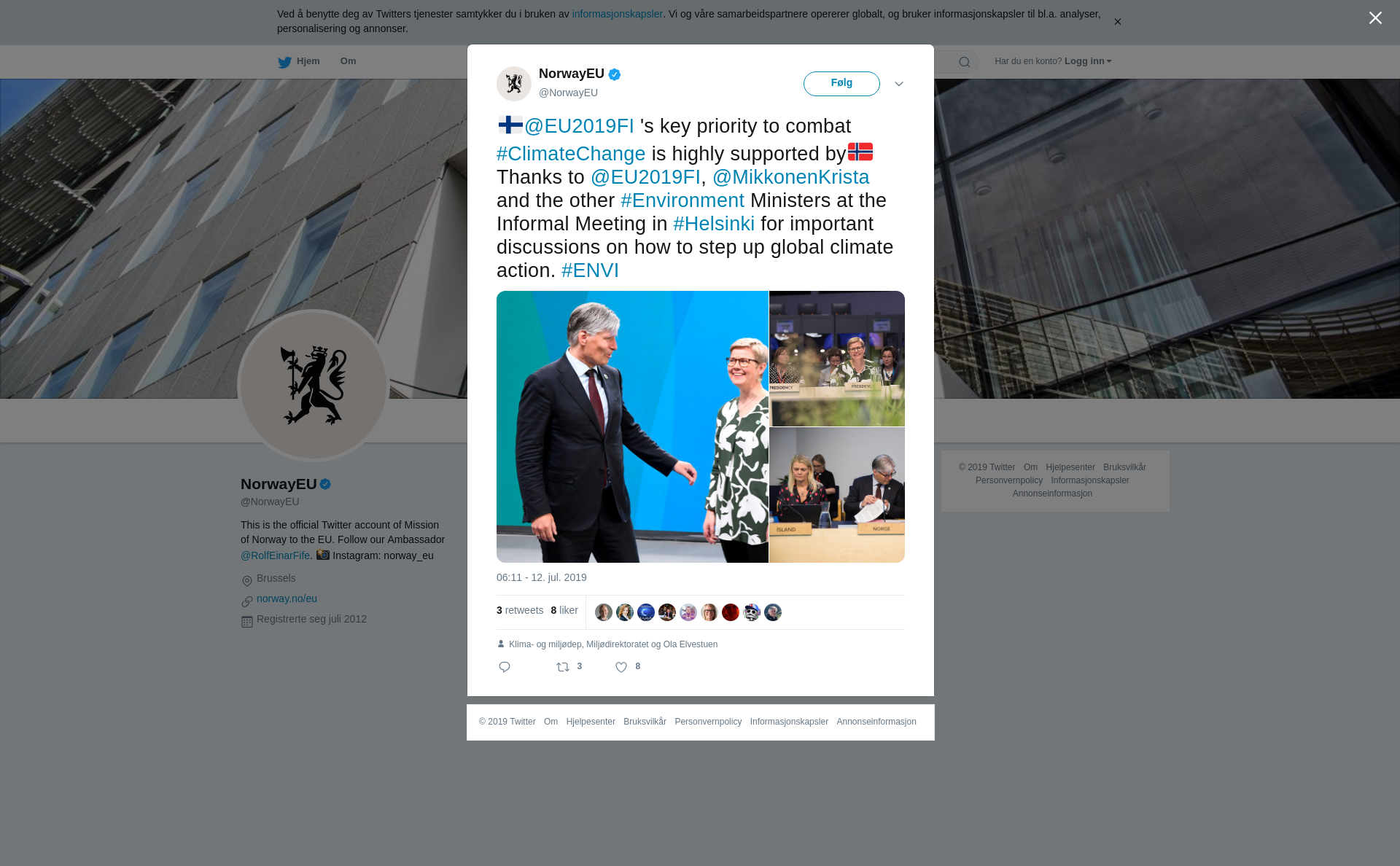 RT @NorwayEU: 🇫🇮@EU2019FI 's key priority to combat #ClimateChange is highly supported by🇳🇴 Thanks to @EU2019FI, @MikkonenKrista and the other #Environment Ministers at the Informal Meeting in #Helsinki for important discussions on how to step up global climate action. #ENVI https://t.co/PVflbDYu1j