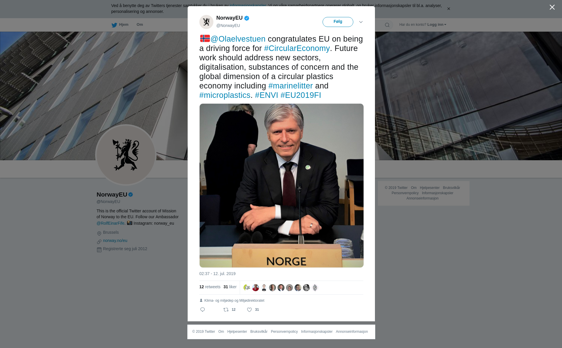 RT @NorwayEU: 🇳🇴@Olaelvestuen congratulates EU on being a driving force for #CircularEconomy. Future work should address new sectors, digitalisation, substances of concern and the global dimension of a circular plastics economy including #marinelitter and #microplastics. #ENVI #EU2019FI https://t.co/MYwfi6x5wP