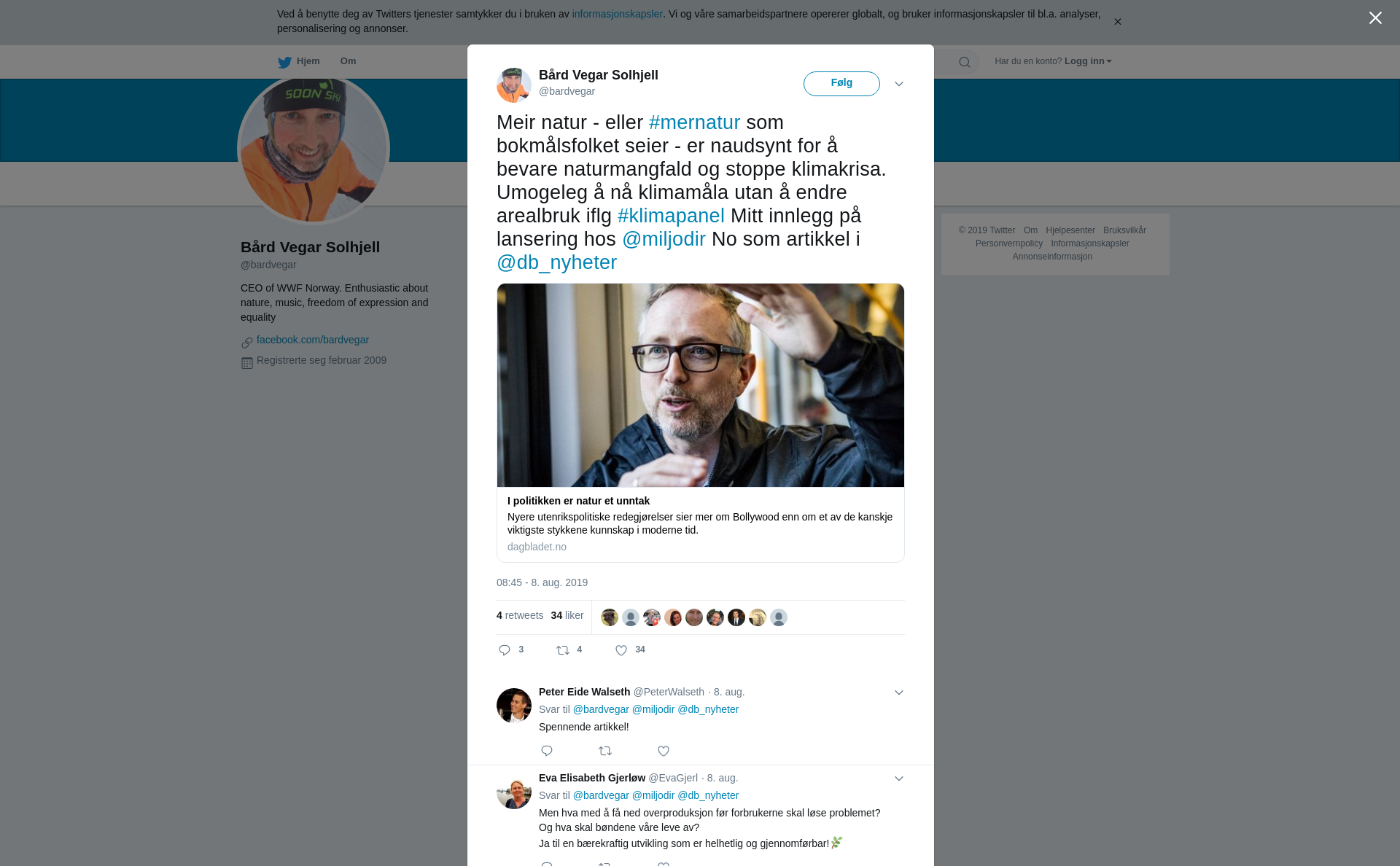 RT @bardvegar: Meir natur - eller #mernatur som bokmålsfolket seier - er naudsynt for å bevare naturmangfald og stoppe klimakrisa. Umogeleg å nå klimamåla utan å endre arealbruk iflg #klimapanel Mitt innlegg på lansering hos @miljodir No som artikkel i @db_nyheter https://t.co/jCvv67LfEs