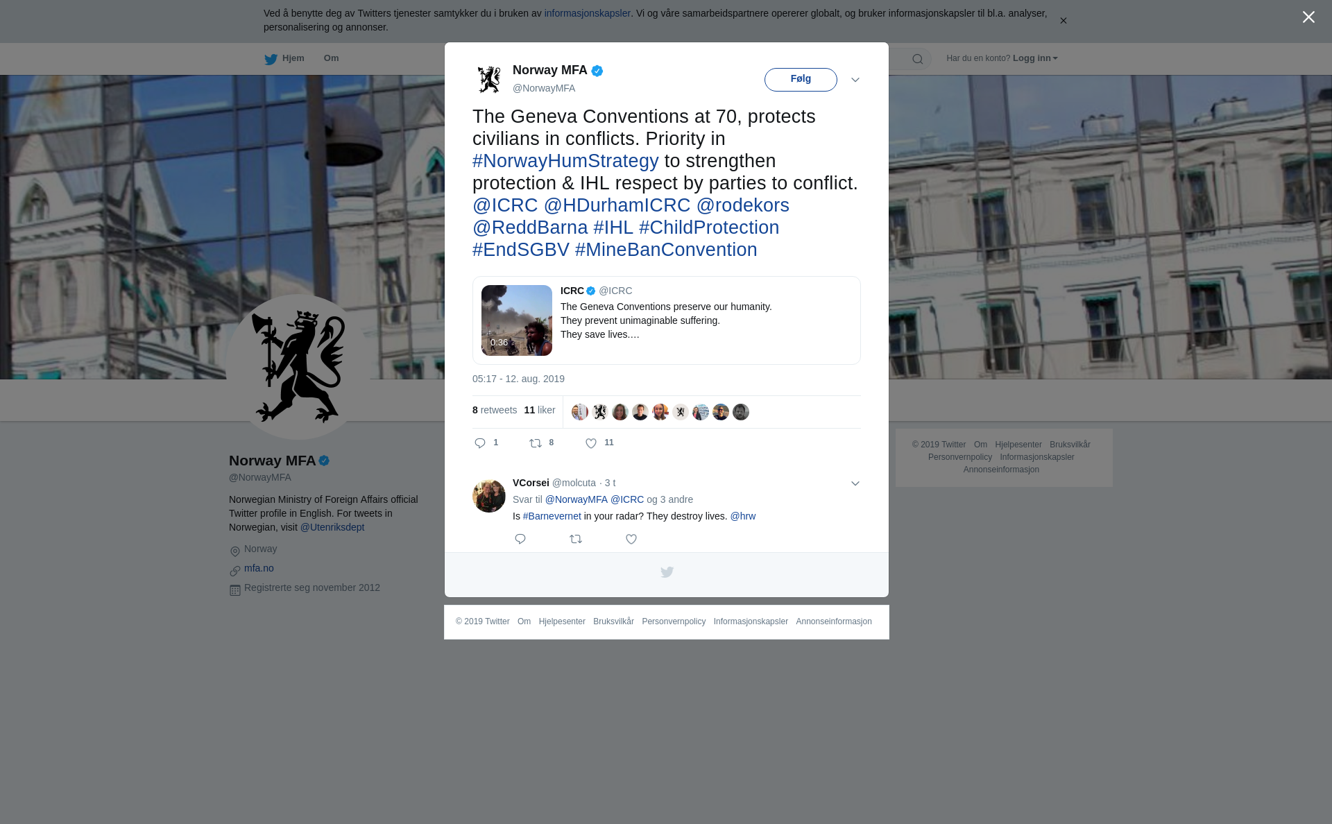 The Geneva Conventions at 70, protects civilians in conflicts. Priority in #NorwayHumStrategy to strengthen protection & IHL respect by parties to conflict. @ICRC @HDurhamICRC @rodekors @ReddBarna #IHL #ChildProtection #EndSGBV #MineBanConvention