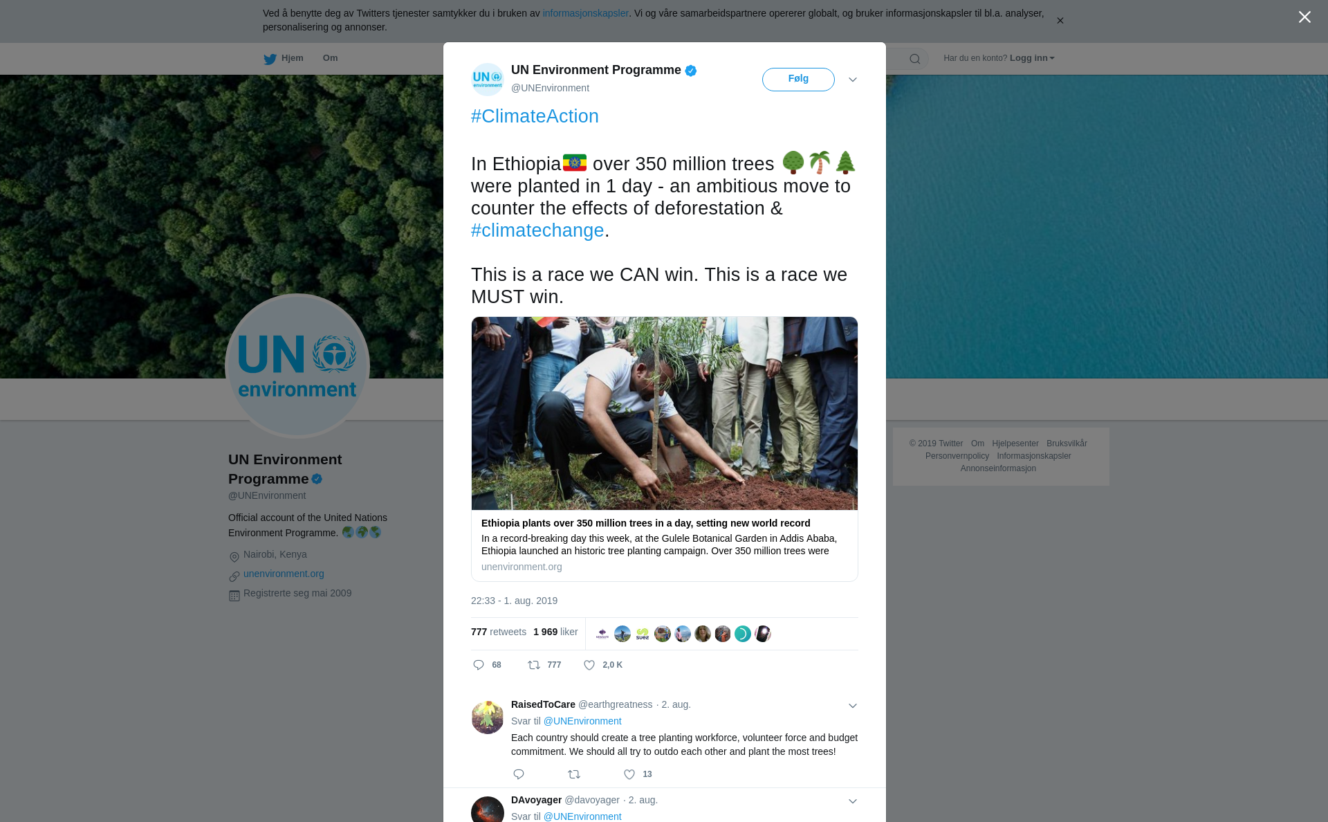 RT @UNEnvironment: #ClimateAction In Ethiopia🇪🇹 over 350 million trees 🌳🌴🌲 were planted in 1 day - an ambitious move to counter the effect…