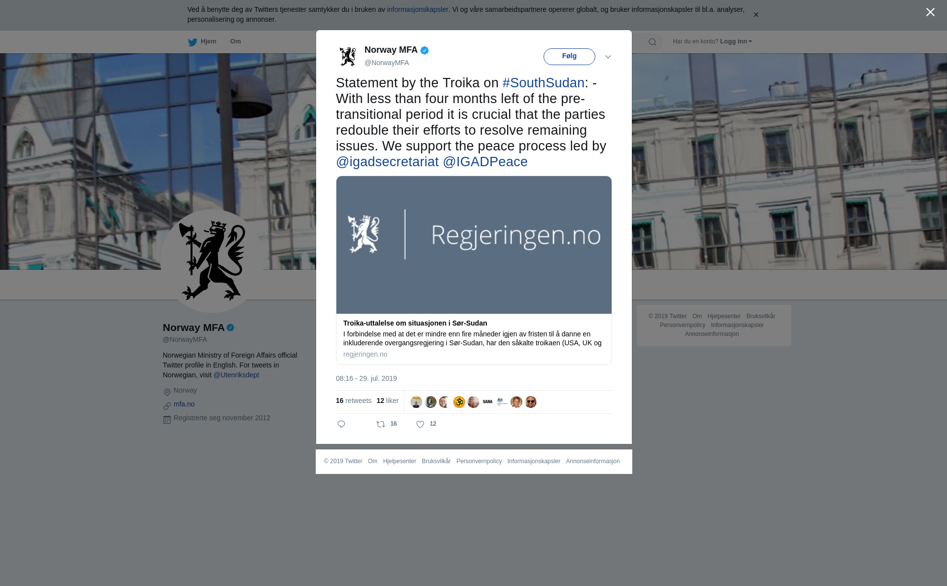 Troika-uttalelse om situasjonen i Sør-Sudan