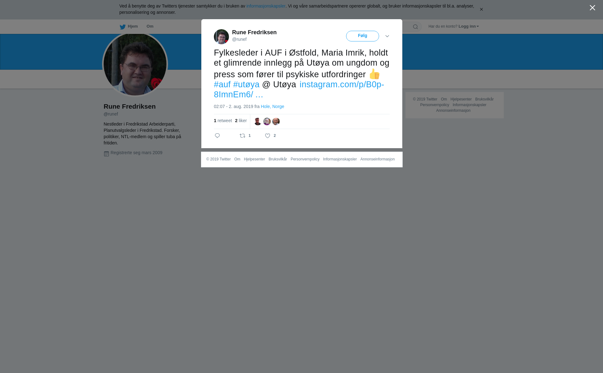 RT @runef: Fylkesleder i AUF i Østfold, Maria Imrik, holdt et glimrende innlegg på Utøya om ungdom og press som fører til psykiske utfordringer 👍 #auf #utøya @ Utøya https://t.co/rmewtfVTsj