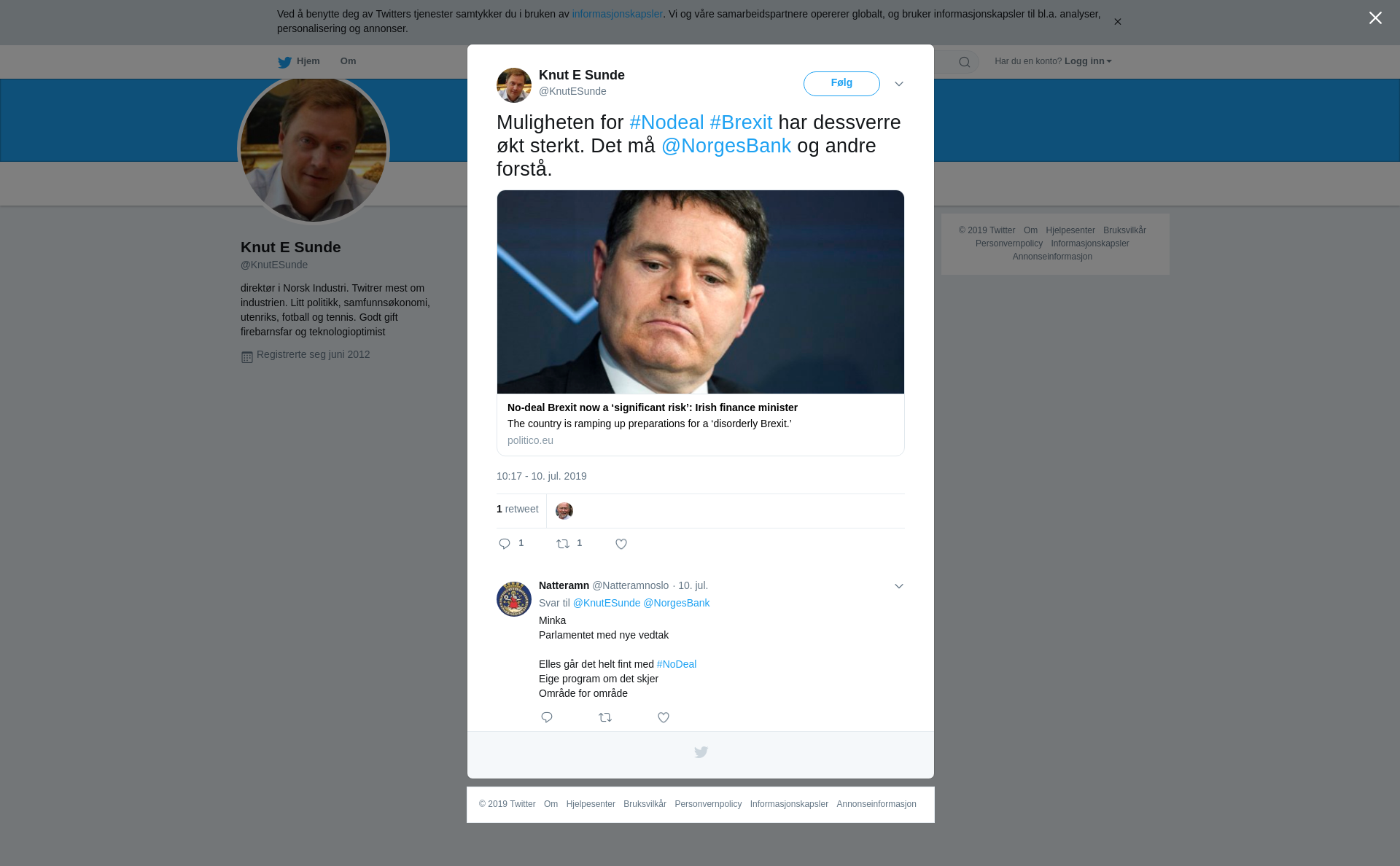 RT @KnutESunde: Muligheten for #Nodeal #Brexit har dessverre økt sterkt. Det må @NorgesBank og andre forstå. https://t.co/nsdeZqkMtr