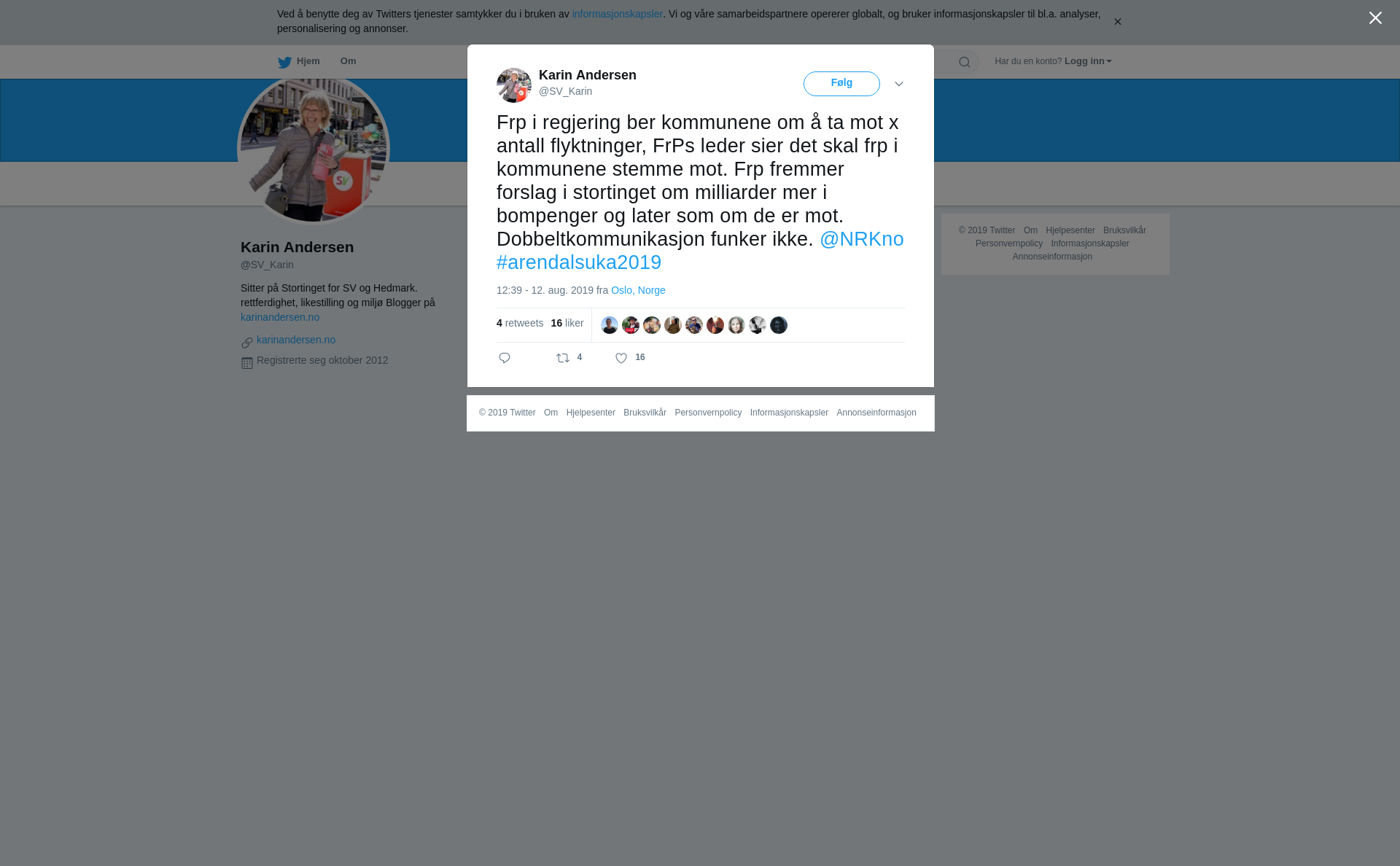 Frp i regjering ber kommunene om å ta mot x antall flyktninger, FrPs leder sier det skal frp i kommunene stemme mot. Frp fremmer forslag i stortinget om milliarder mer i bompenger og later som om de er mot. Dobbeltkommunikasjon funker ikke. @NRKno #arendalsuka2019