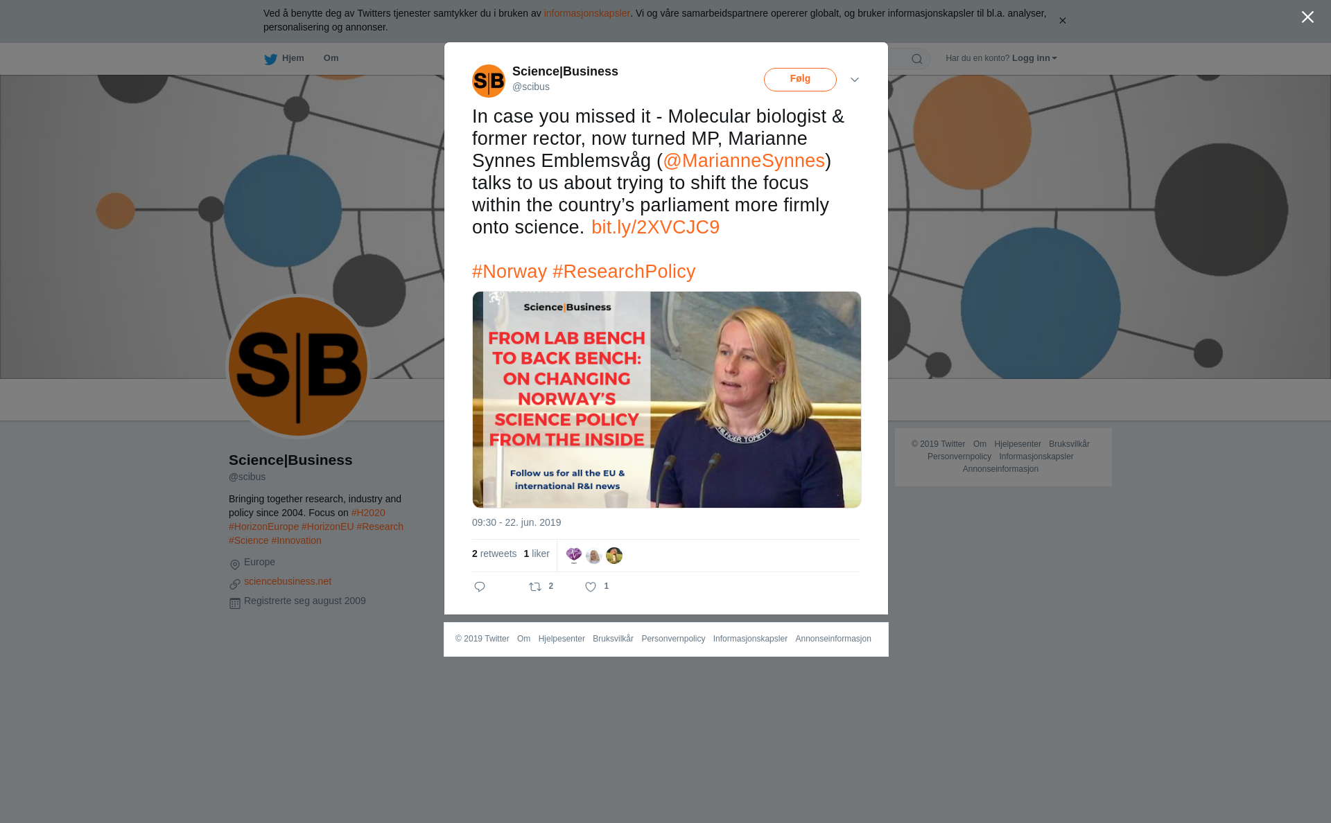 RT @scibus: In case you missed it - Molecular biologist & former rector, now turned MP, Marianne Synnes Emblemsvåg (@MarianneSynnes) talks to us about trying to shift the focus within the country’s parliament more firmly onto science. https://t.co/ViBZajrYIq