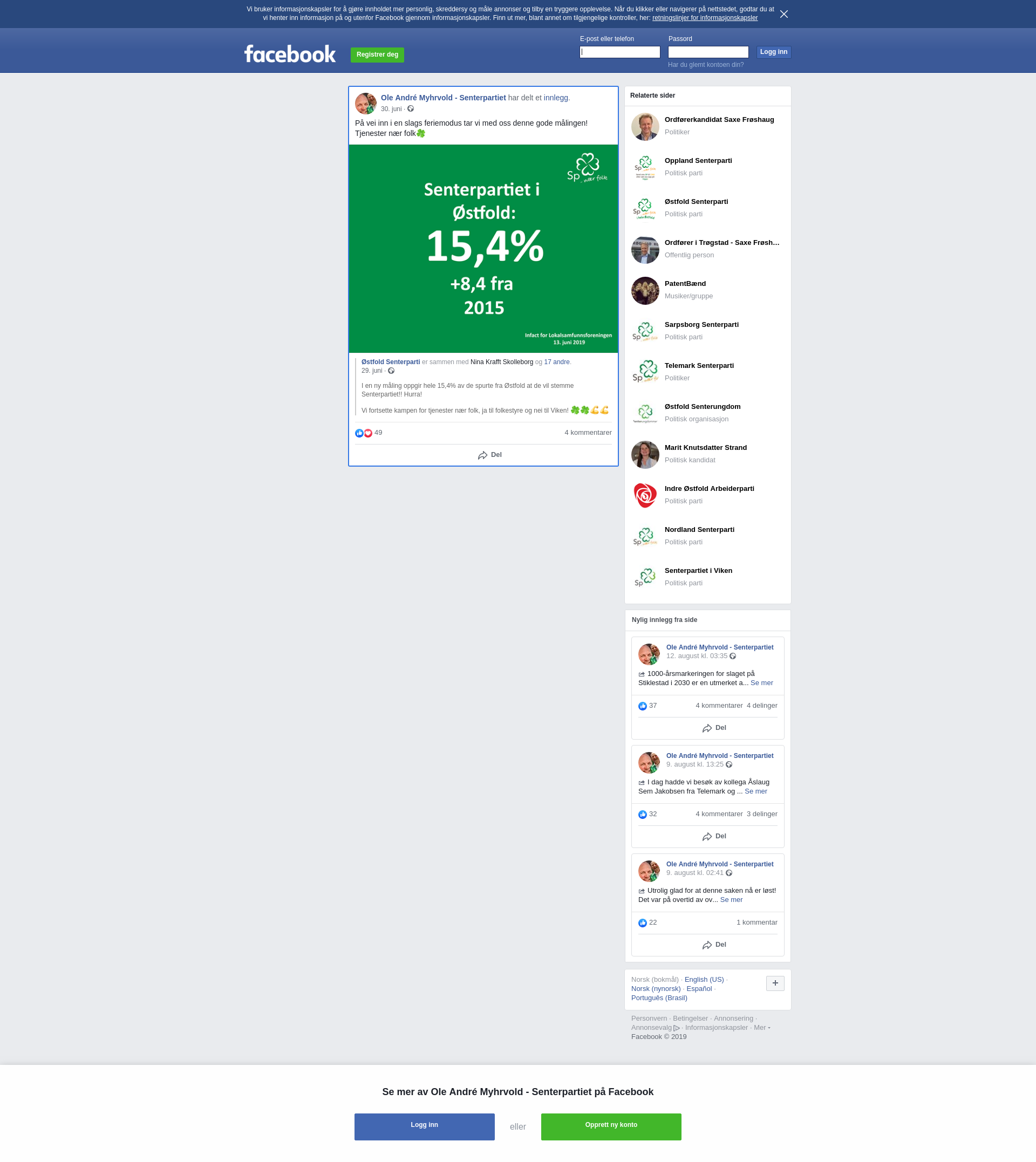 I en ny måling oppgir hele 15,4% av de spurte fra Østfold at de vil stemme Senterpartiet!! Hurra! Vi fortsette kampen for tjenester nær folk, ja til folkestyre og nei til Viken! 🍀🍀💪💪