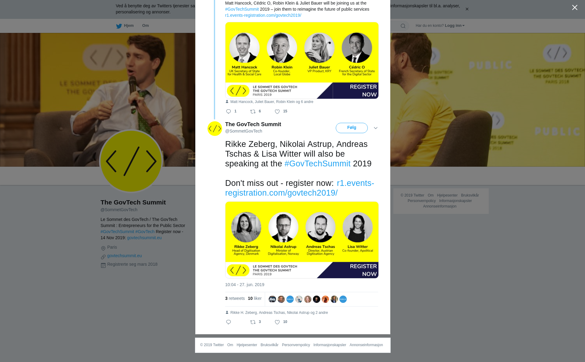 RT @SommetGovTech: @MattHancock @JulietBauer @robinklein @cedric_o @PUBLIC_France @DanielKorski @PUBLIC_Team @PUBLIC_Denmark @PUBLIC_Germany Rikke Zeberg, Nikolai Astrup, Andreas Tschas & Lisa Witter will also be speaking at the #GovTechSummit 2019