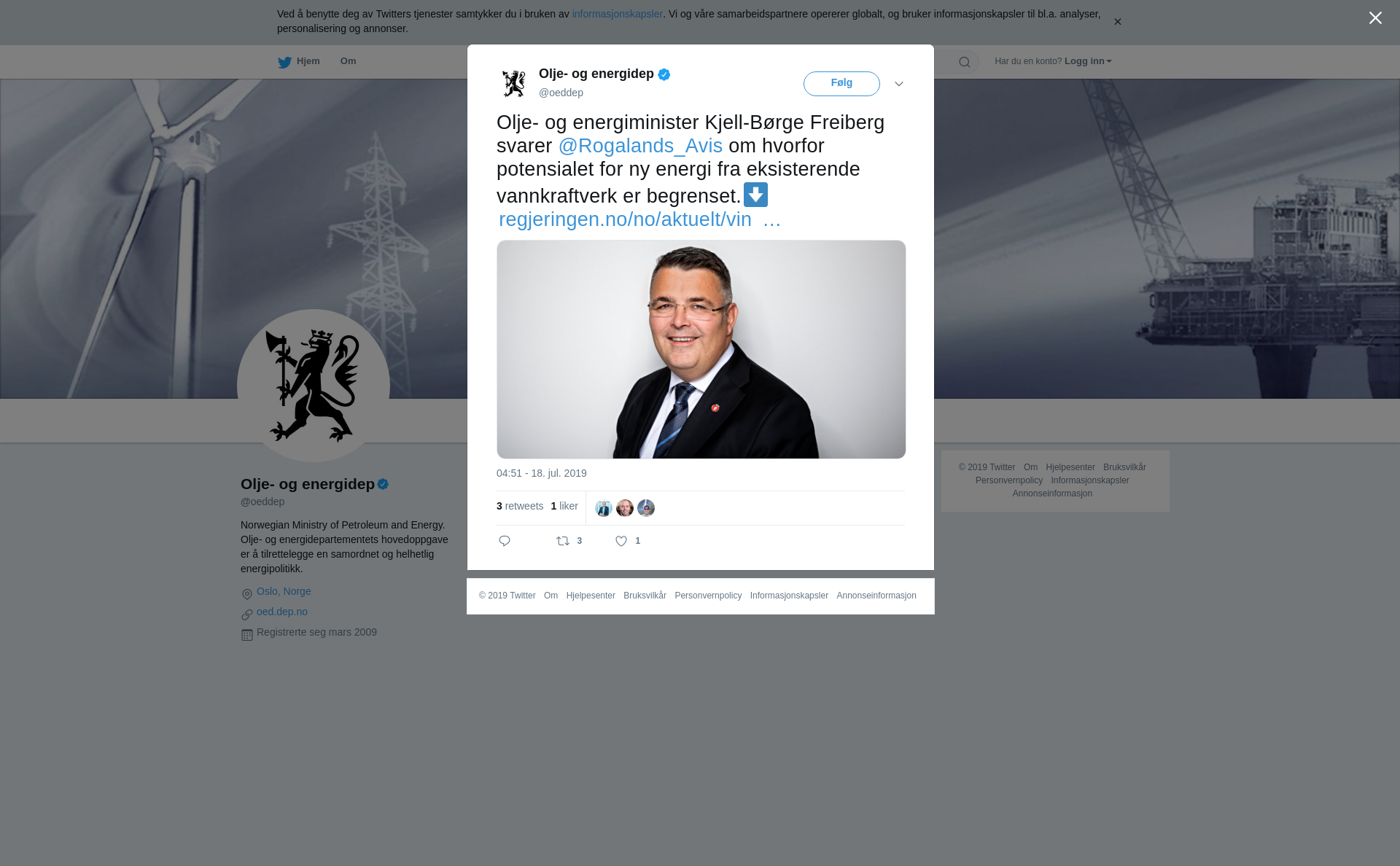 Olje- og energiminister Kjell-Børge Freiberg svarer @Rogalands_Avis om hvorfor potensialet for ny energi fra eksisterende vannkraftverk er begrenset.⬇️ https://t.co/luQYBBYuUz https://t.co/yeQqLxlnUk