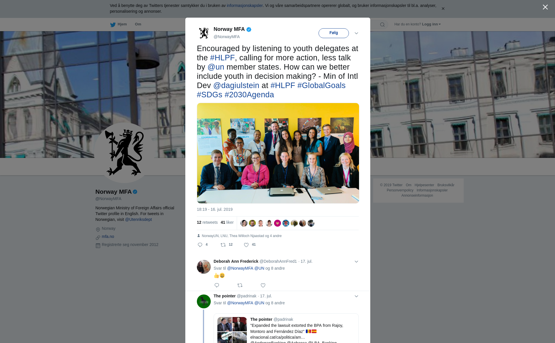RT @NorwayMFA: Encouraged by listening to youth delegates at the #HLPF, calling for more action, less talk by @un member states. How can we better include youth in decision making? - Min of Intl Dev @dagiulstein at #HLPF #GlobalGoals #SDGs #2030Agenda https://t.co/YQp03UKwue