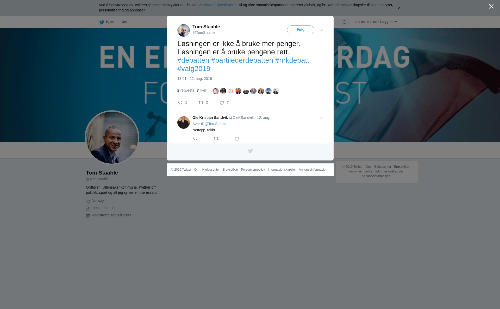 RT @TomStaahle: Løsningen er ikke å bruke mer penger. Løsningen er å bruke pengene rett. #debatten #partilederdebatten #nrkdebatt #valg2019
