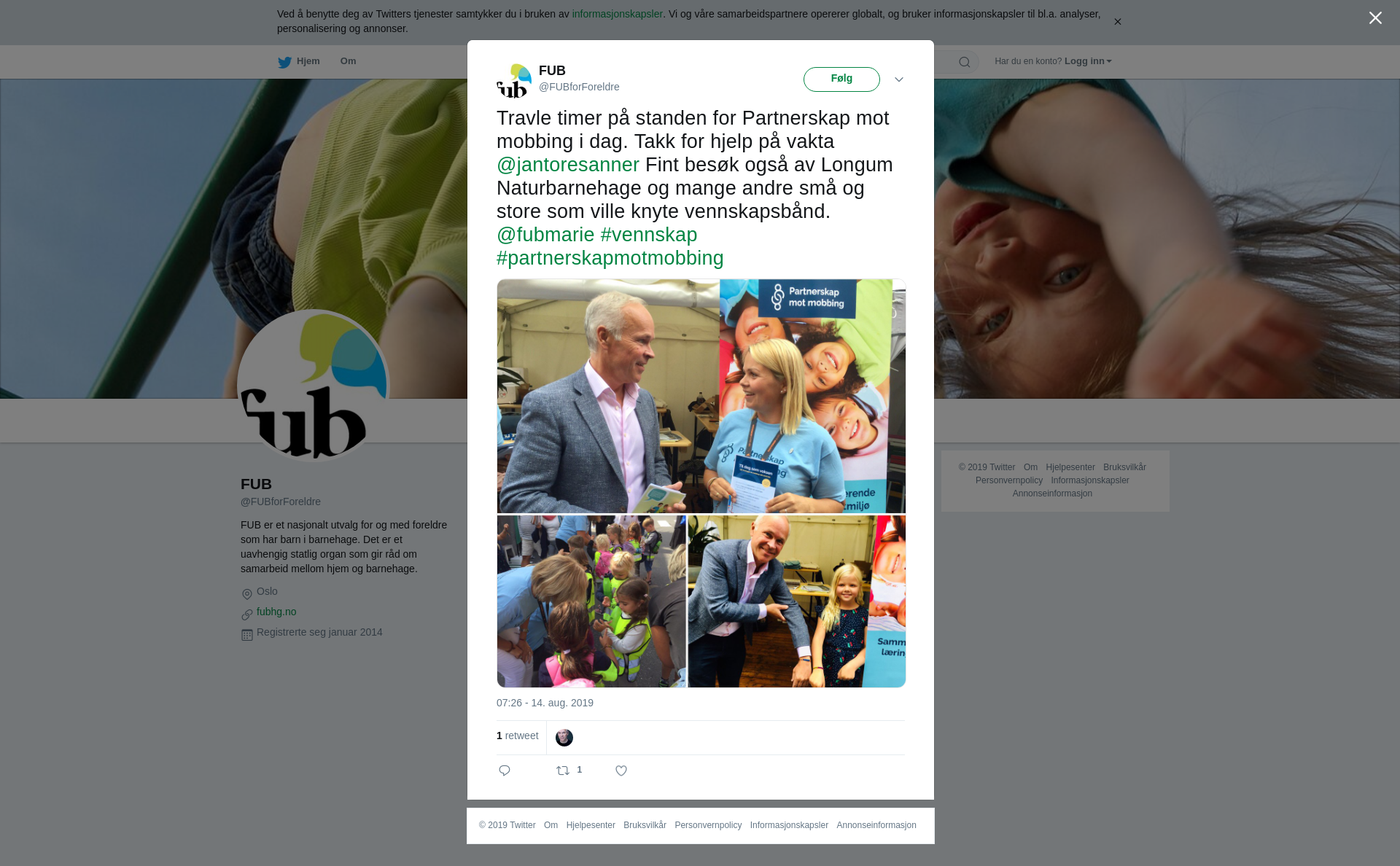 RT @FUBforForeldre: Travle timer på standen for Partnerskap mot mobbing i dag. Takk for hjelp på vakta @jantoresanner Fint besøk også av Longum Naturbarnehage og mange andre små og store som ville knyte vennskapsbånd. @fubmarie #vennskap #partnerskapmotmobbing https://t.co/kXGVtdhj8R