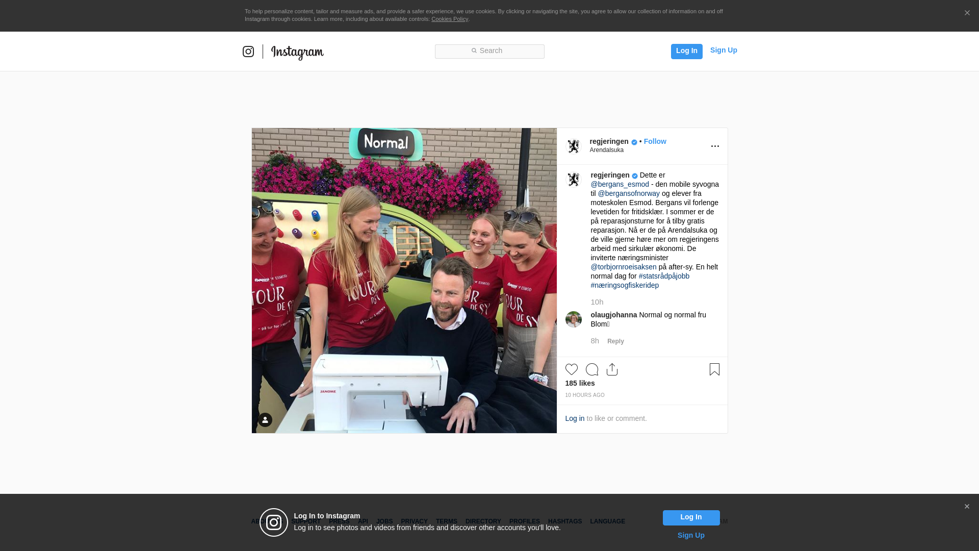 Dette er @bergans_esmod - den mobile syvogna til @bergansofnorway og elever fra moteskolen Esmod. Bergans vil forlenge levetiden for fritidsklær. I sommer er de på reparasjonsturne for å tilby gratis reparasjon. Nå er de på Arendalsuka og de ville gjerne høre mer om regjeringens arbeid med sirkulær økonomi. De inviterte næringsminister @torbjornroeisaksen på after-sy. En helt normal dag for #statsrådpåjobb #næringsogfiskeridep