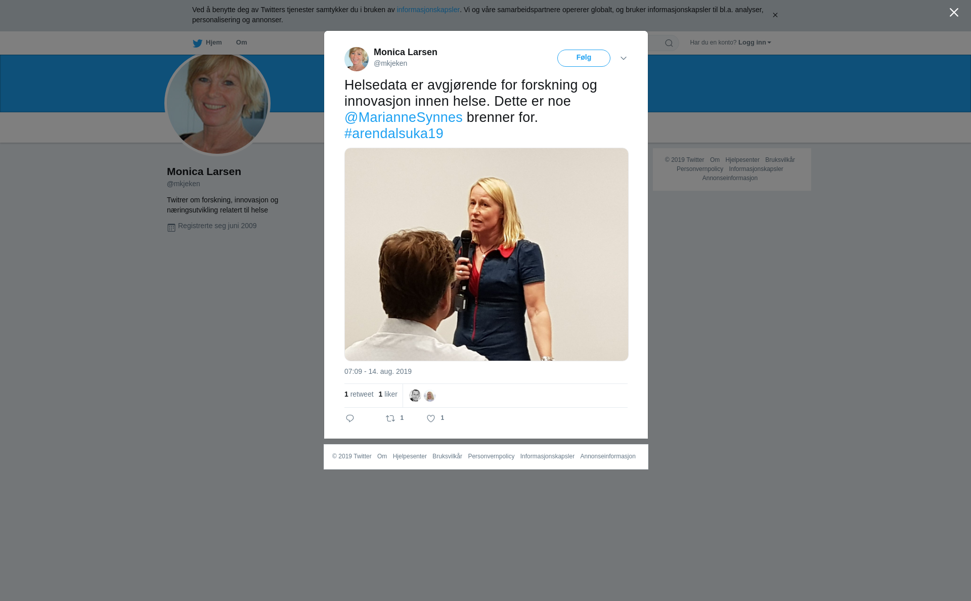 RT @mkjeken: Helsedata er avgjørende for forskning og innovasjon innen helse. Dette er noe @MarianneSynnes brenner for. #arendalsuka19 https://t.co/MiW0Jt1gjT