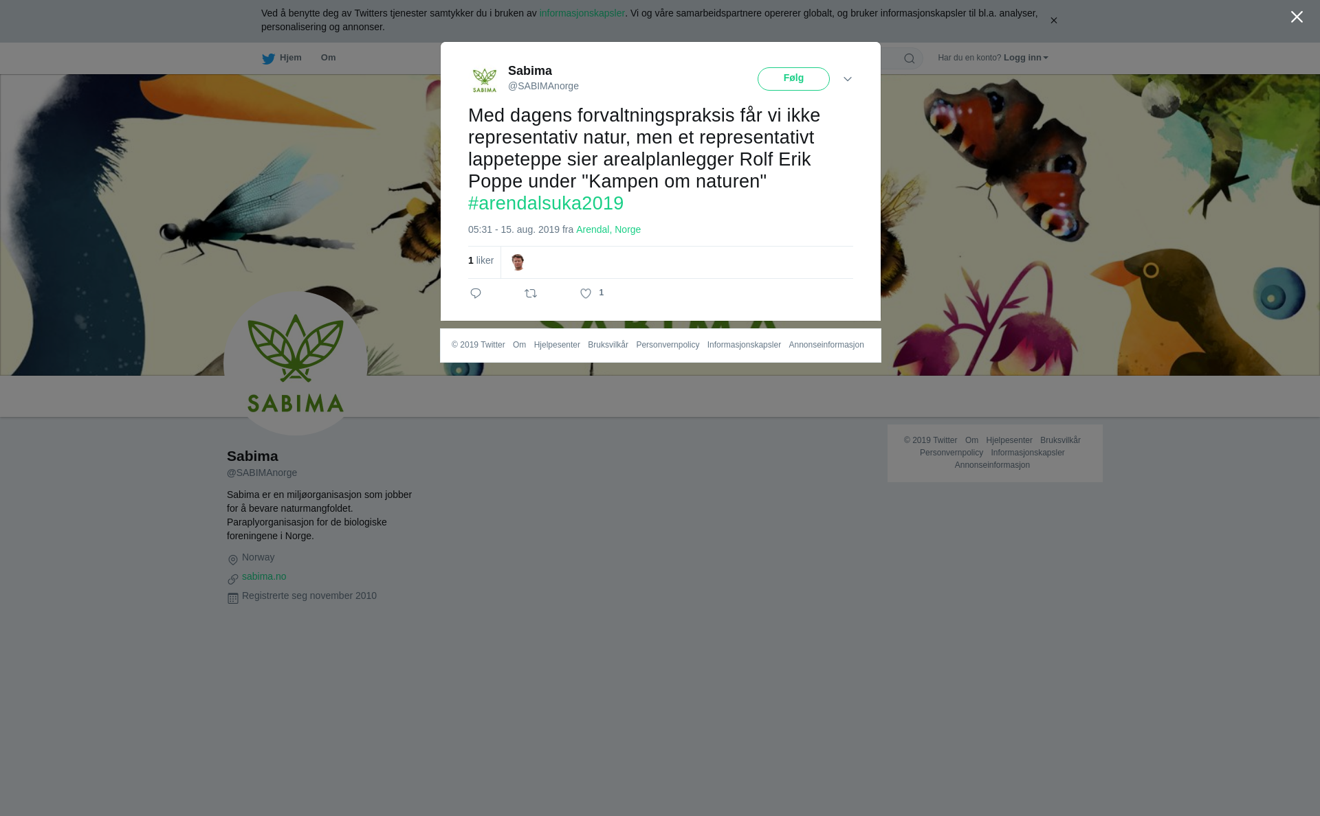 RT @SABIMAnorge: Med dagens forvaltningspraksis får vi ikke representativ natur, men et representativt lappeteppe sier arealplanlegger Rolf Erik Poppe under "Kampen om naturen" #arendalsuka2019