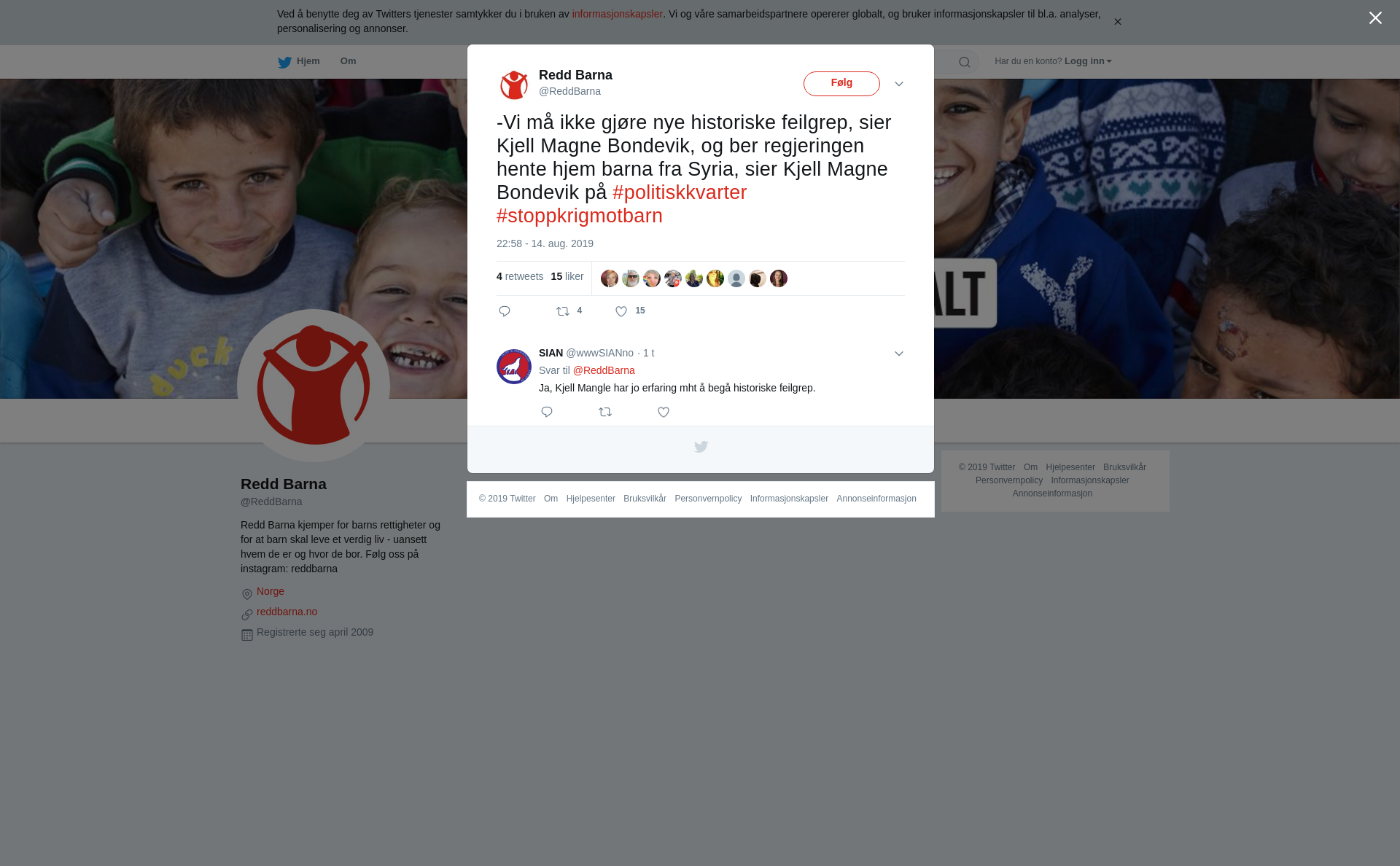RT @ReddBarna: -Vi må ikke gjøre nye historiske feilgrep, sier Kjell Magne Bondevik, og ber regjeringen hente hjem barna fra Syria, sier Kjell Magne Bondevik på #politiskkvarter #stoppkrigmotbarn