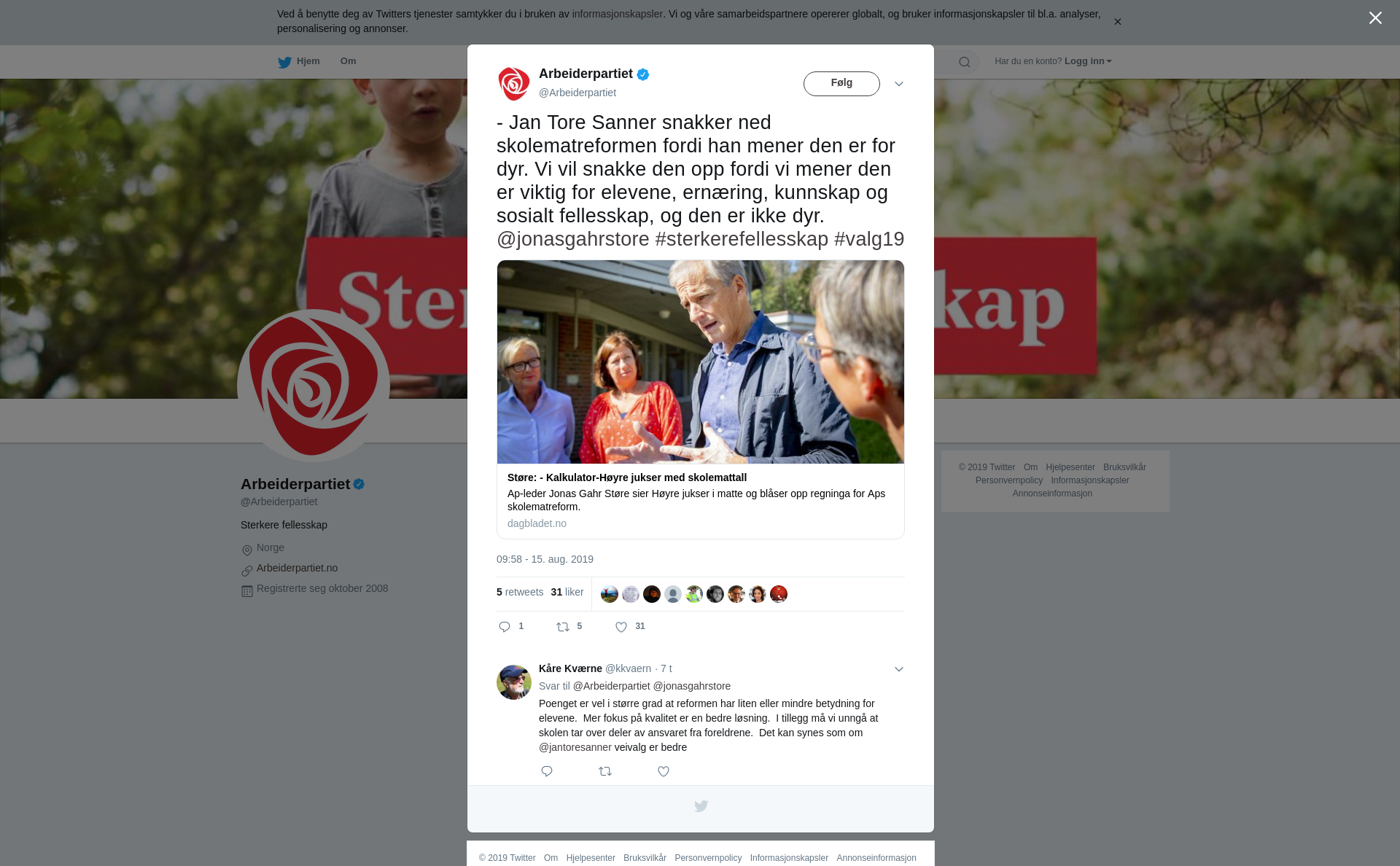 RT @Arbeiderpartiet: - Jan Tore Sanner snakker ned skolematreformen fordi han mener den er for dyr. Vi vil snakke den opp fordi vi mener den er viktig for elevene, ernæring, kunnskap og sosialt fellesskap, og den er ikke dyr. @jonasgahrstore #sterkerefellesskap #valg19 https://t.co/7pnr7yxKpw