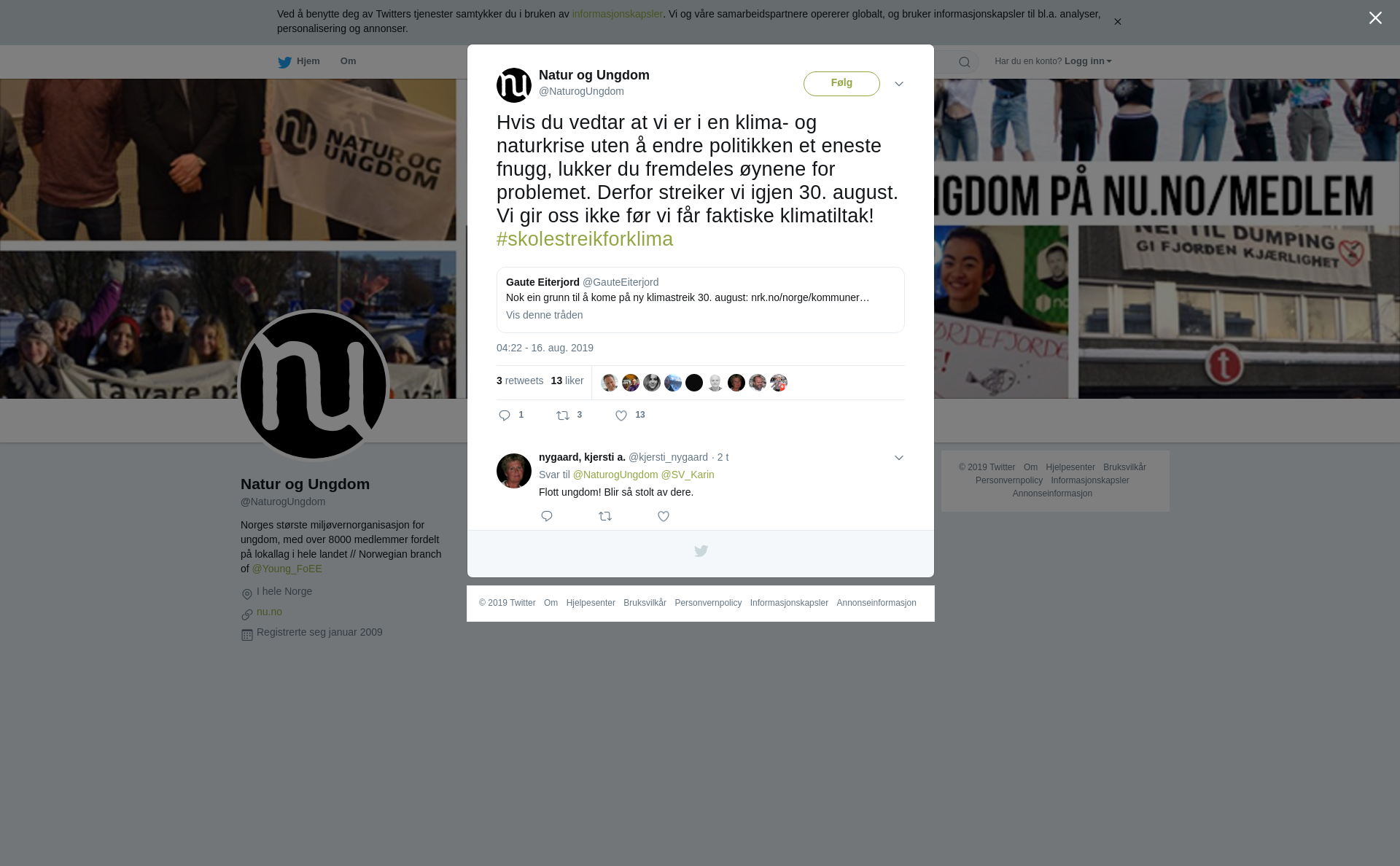 RT @NaturogUngdom: Hvis du vedtar at vi er i en klima- og naturkrise uten å endre politikken et eneste fnugg, lukker du fremdeles øynene for problemet. Derfor streiker vi igjen 30. august. Vi gir oss ikke før vi får faktiske klimatiltak! #skolestreikforklima https://t.co/nQCpOLq3QB