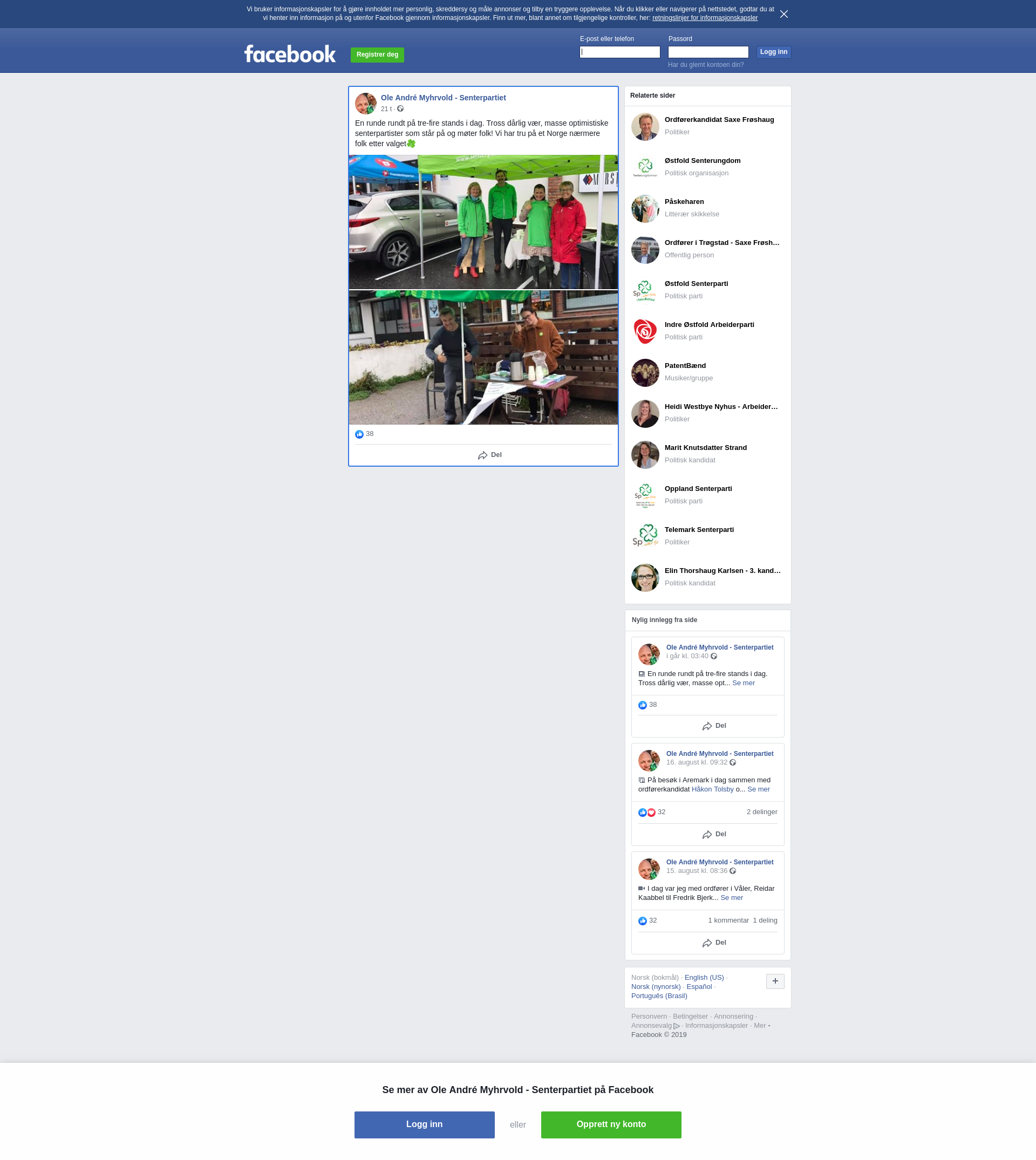 En runde rundt på tre-fire stands i dag. Tross dårlig vær, masse optimistiske senterpartister som står på og møter folk! Vi har tru på et Norge nærmere folk etter valget🍀