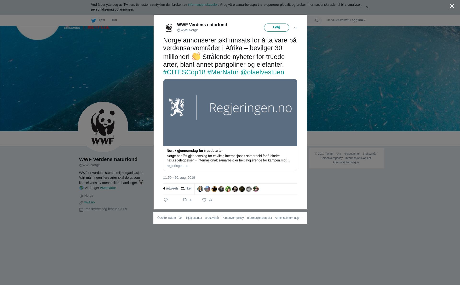 RT @WWFNorge: Norge annonserer økt innsats for å ta vare på verdensarvområder i Afrika – bevilger 30 millioner! 👏 Strålende nyheter for truede arter, blant annet pangoliner og elefanter. #CITESCop18 #MerNatur @olaelvestuen