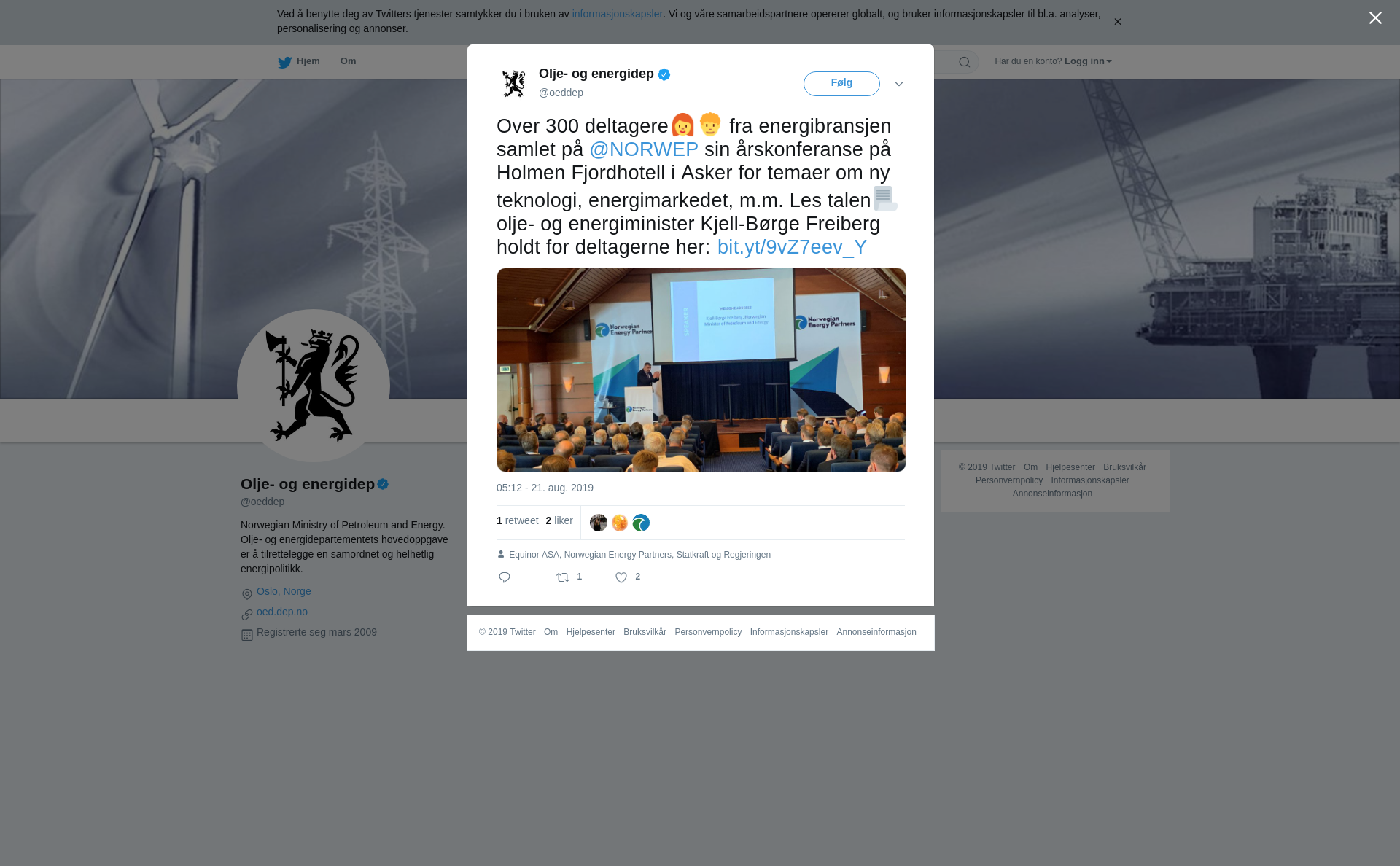 Over 300 deltagere👩🦰👨🦱 fra energibransjen samlet på @NORWEP sin årskonferanse på Holmen Fjordhotell i Asker for temaer om ny teknologi, energimarkedet, m.m. Les talen📃 olje- og energiminister Kjell-Børge Freiberg holdt for deltagerne her: https://t.co/evTEeU4zcD https://t.co/9MA2eMnjnF