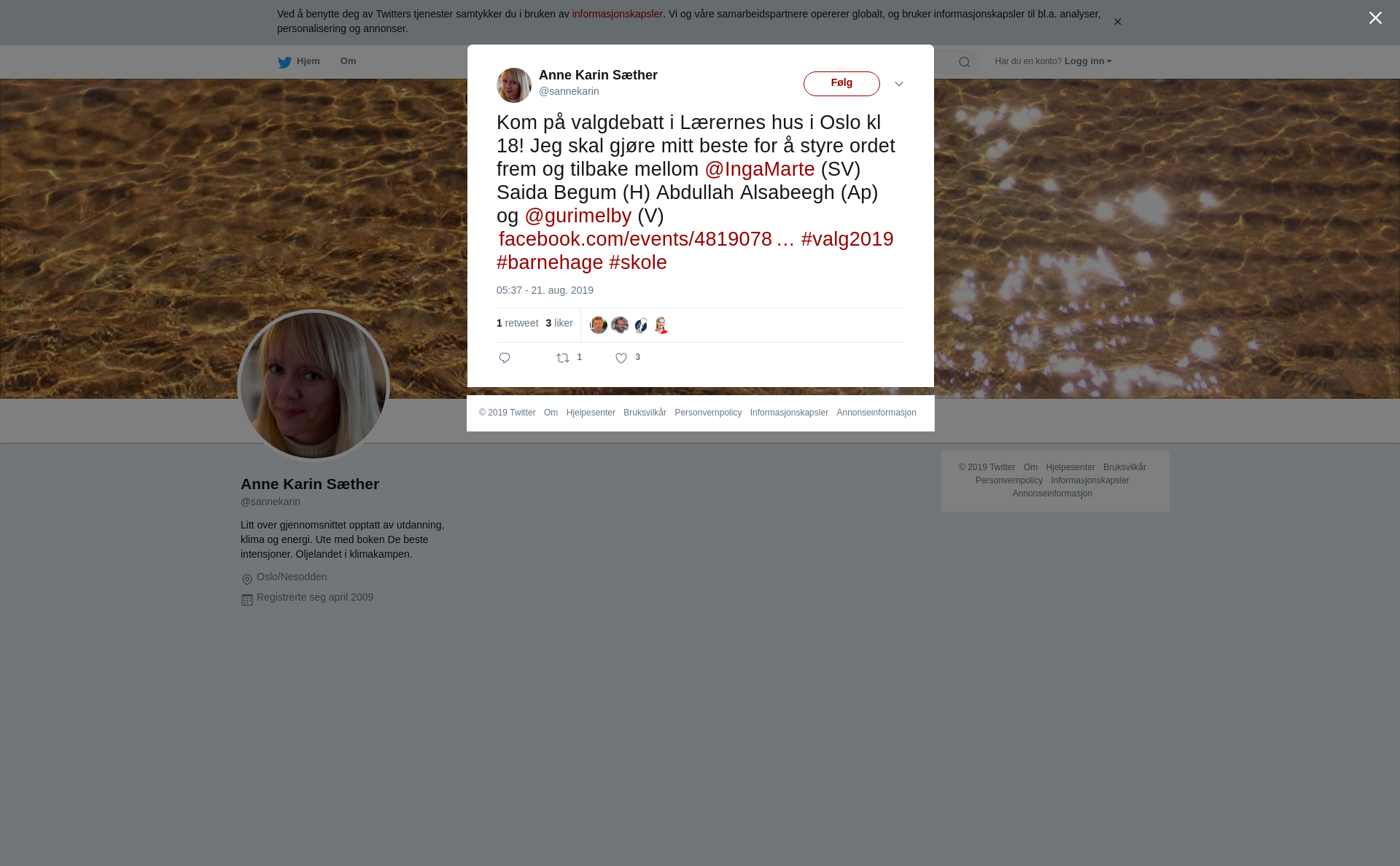 RT @sannekarin: Kom på valgdebatt i Lærernes hus i Oslo kl 18! Jeg skal gjøre mitt beste for å styre ordet frem og tilbake mellom @IngaMarte (SV) Saida Begum (H) Abdullah Alsabeegh (Ap) og @gurimelby (V) https://t.co/8SIFVxzDii #valg2019 #barnehage #skole