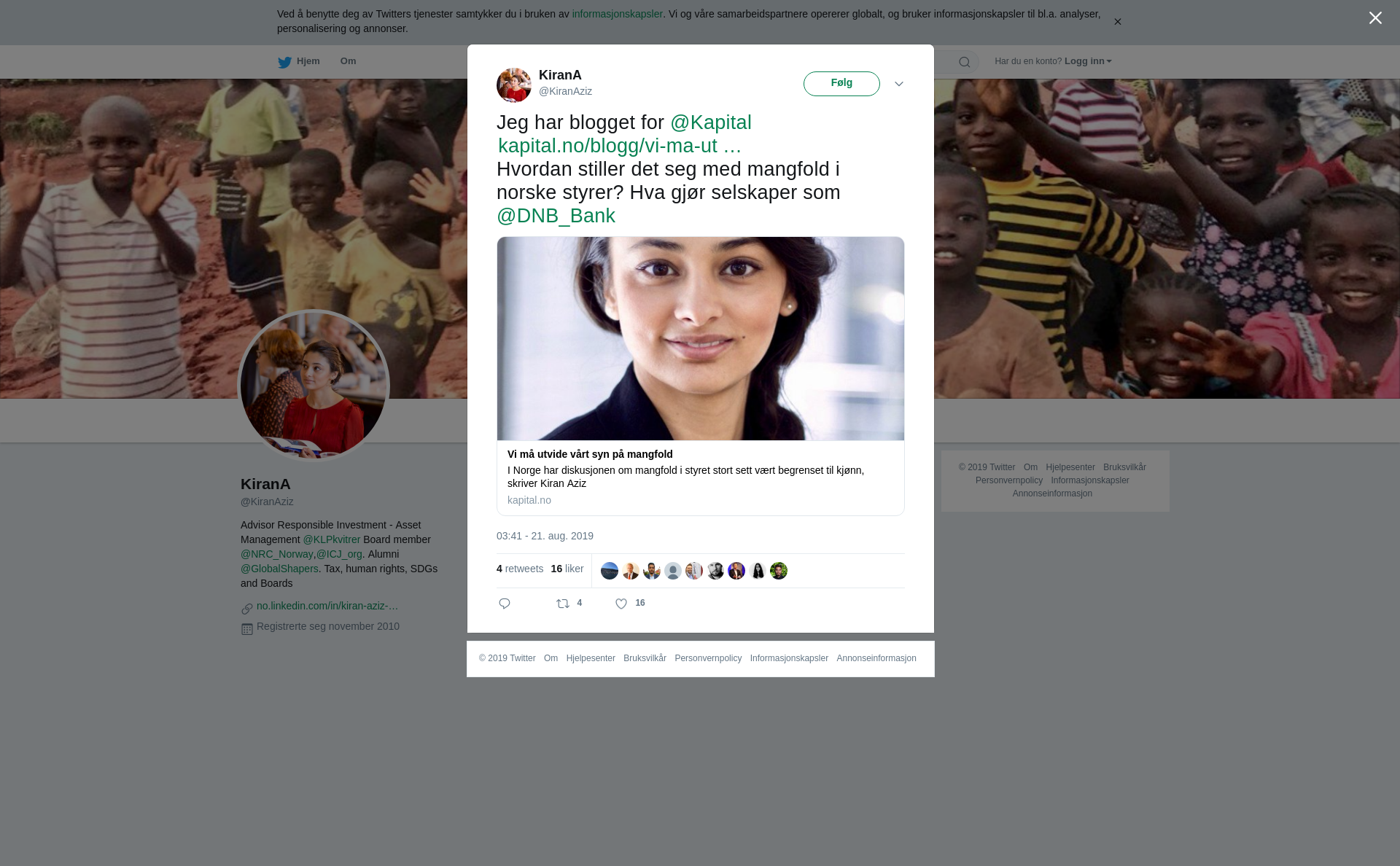 RT @KiranAziz: Jeg har blogget for @Kapital https://t.co/g1D6EdTW56 Hvordan stiller det seg med mangfold i norske styrer? Hva gjør selskap…