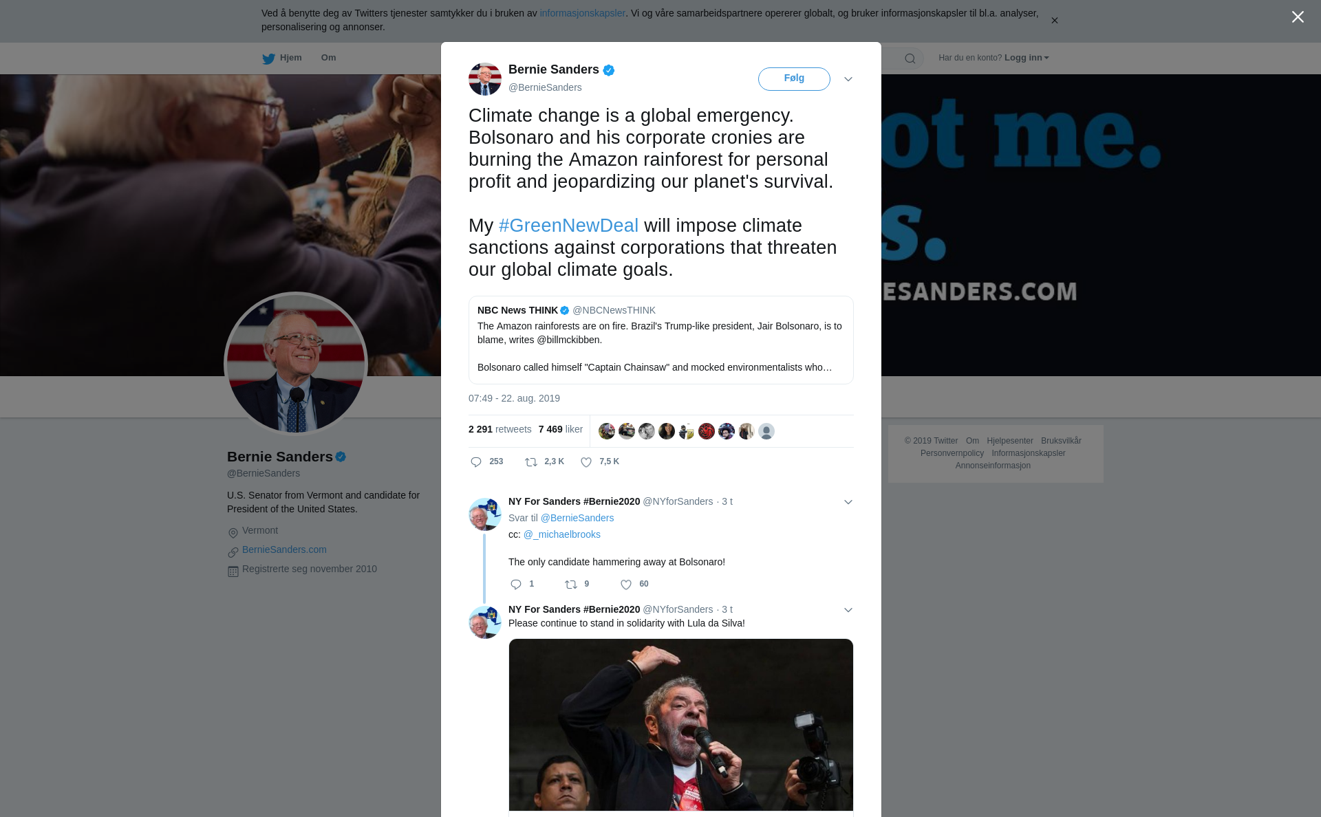 RT @BernieSanders: Climate change is a global emergency. Bolsonaro and his corporate cronies are burning the Amazon rainforest for personal profit and jeopardizing our planet's survival.