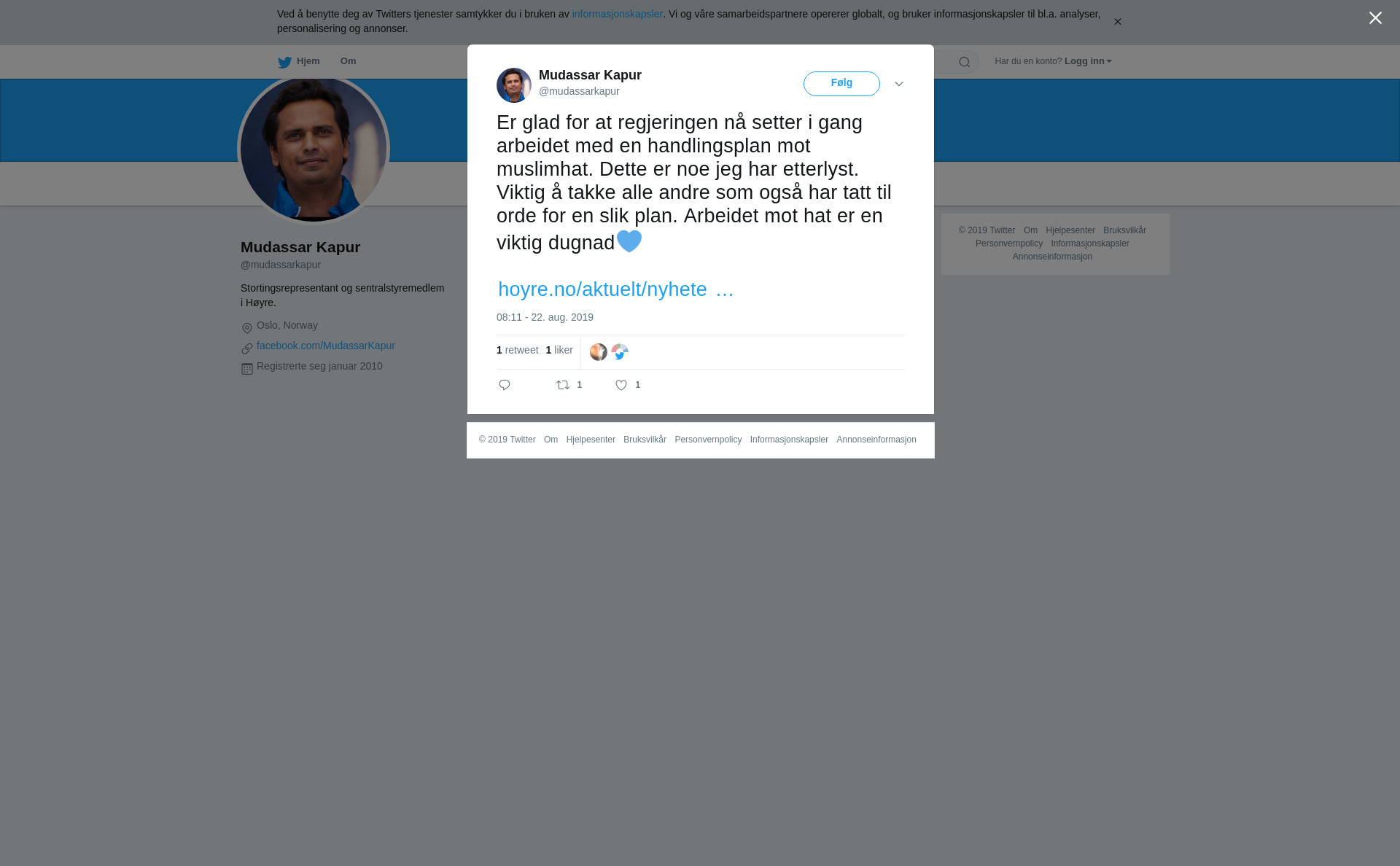 Etter angrepet på al-Noor-moskeen i Bærum, tok Stortingsrepresentant Mudassar Kapur (H) til orde for en handlingsplan mot muslimhat. Nå følger regjeringen opp oppfordringer fra ham og flere andre.