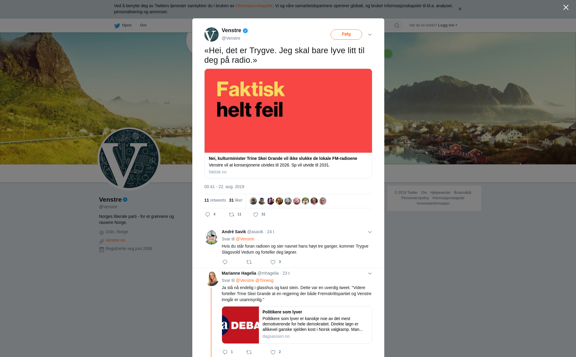 RT @Venstre: «Hei, det er Trygve. Jeg skal bare lyve litt til deg på radio.» https://t.co/Ws25F9hyoA