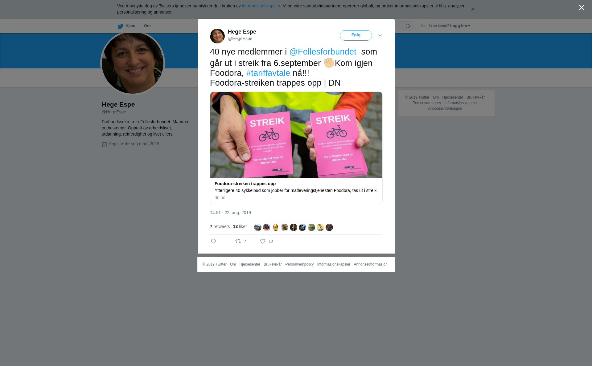 RT @HegeEspe: 40 nye medlemmer i @Fellesforbundet som går ut i streik fra 6.september ✊🏼Kom igjen Foodora, #tariffavtale nå!!! Foodora-str…