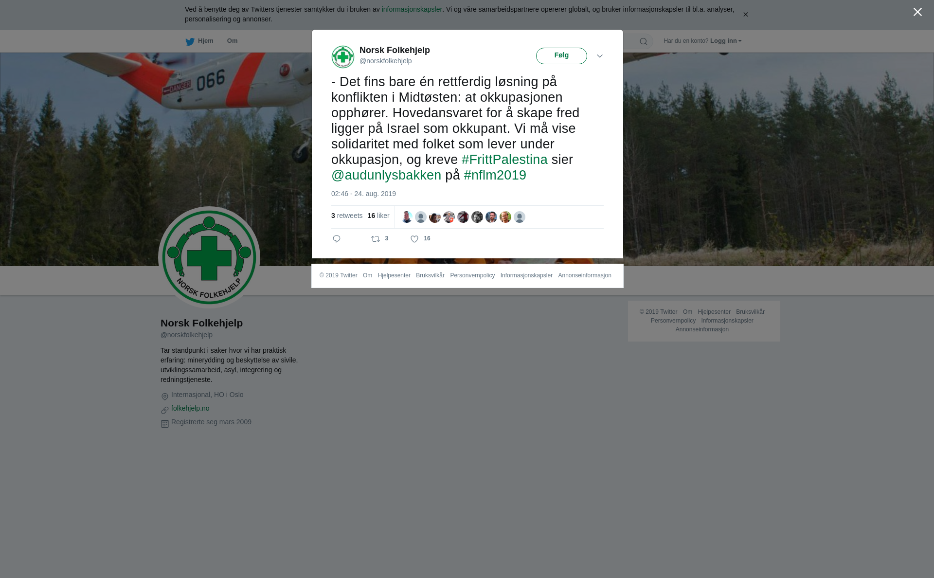 RT @norskfolkehjelp: - Det fins bare én rettferdig løsning på konflikten i Midtøsten: at okkupasjonen opphører. Hovedansvaret for å skape fred ligger på Israel som okkupant. Vi må vise solidaritet med folket som lever under okkupasjon, og kreve #FrittPalestina sier @audunlysbakken på #nflm2019