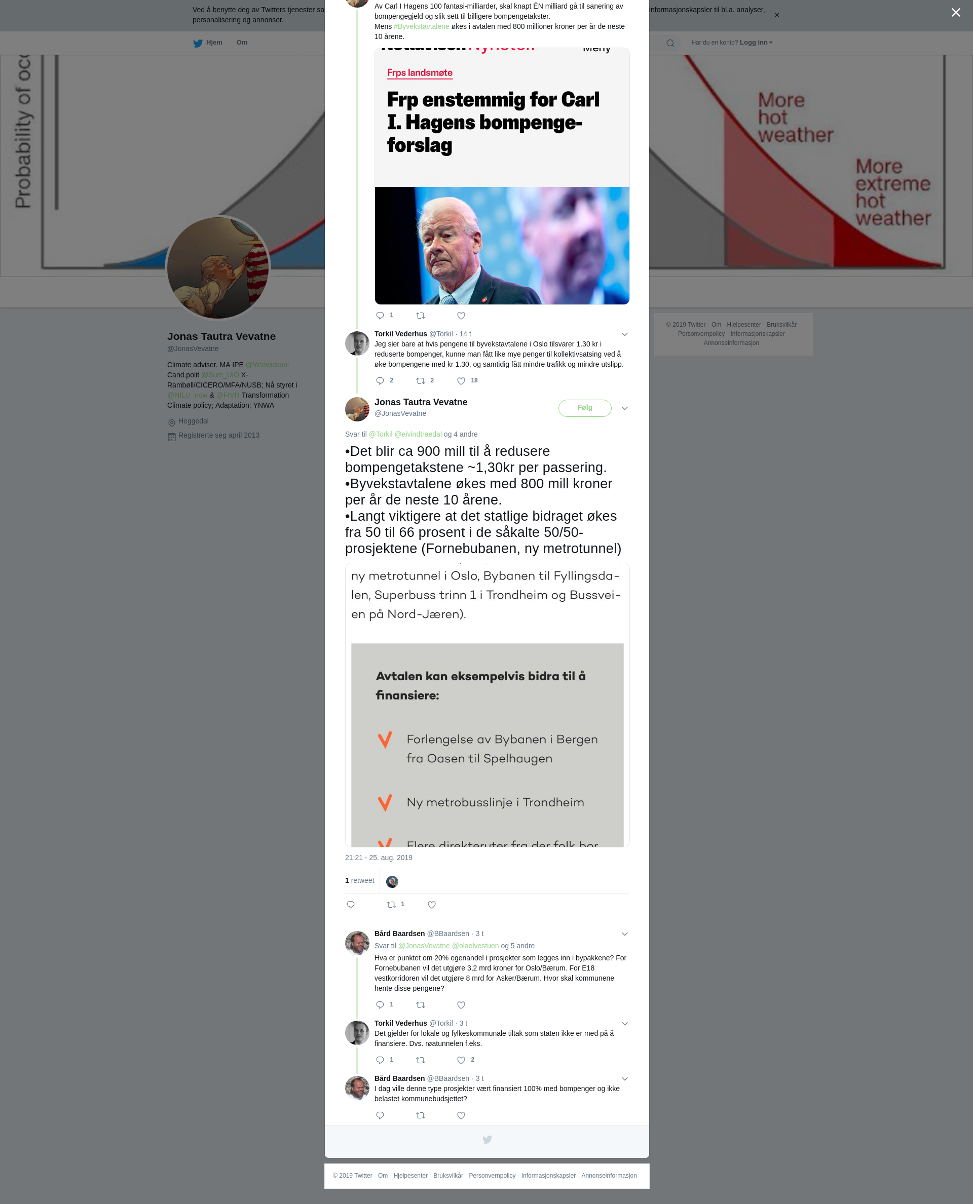 RT @JonasVevatne: @Torkil @eivindtraedal @gurimelby @StevenRayOslo @Rotevatn @olaelvestuen •Det blir ca 900 mill til å redusere bompengetakstene ~1,30kr per passering.