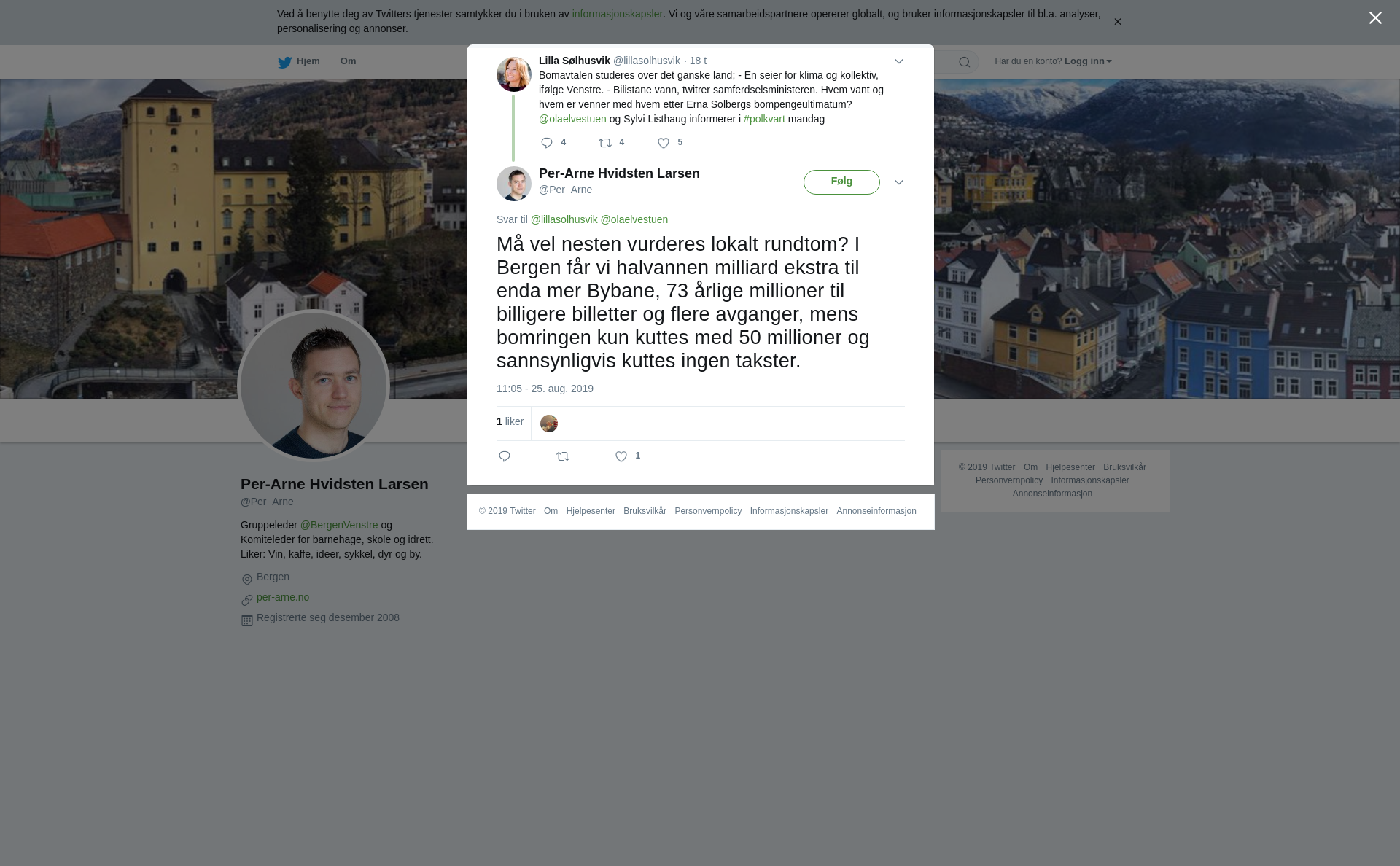 RT @Per_Arne: @lillasolhusvik @olaelvestuen Må vel nesten vurderes lokalt rundtom? I Bergen får vi halvannen milliard ekstra til enda mer Bybane, 73 årlige millioner til billigere billetter og flere avganger, mens bomringen kun kuttes med 50 millioner og sannsynligvis kuttes ingen takster.