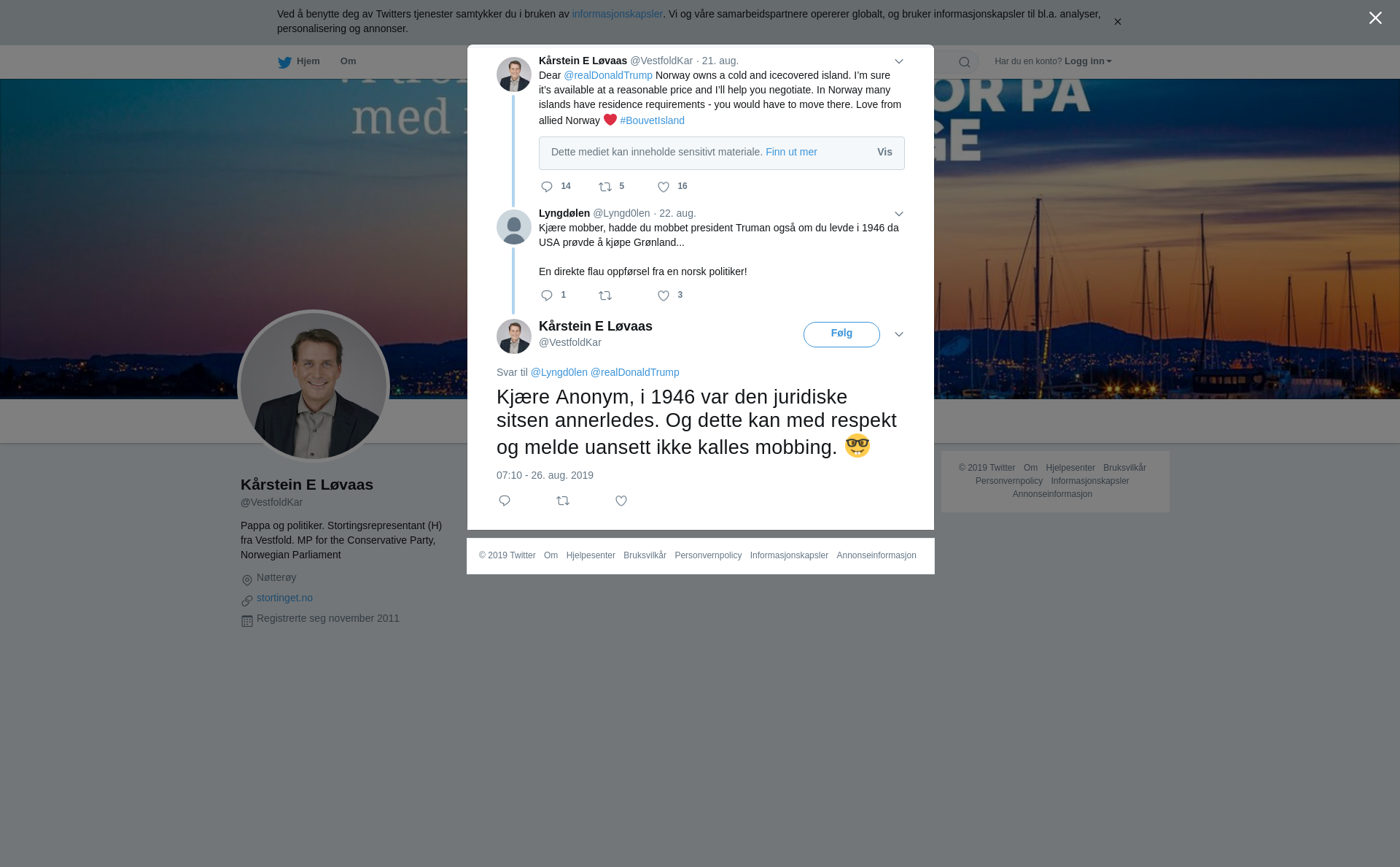 @Lyngd0len @realDonaldTrump Kjære Anonym, i 1946 var den juridiske sitsen annerledes. Og dette kan med respekt og melde uansett ikke kalles mobbing. 🤓