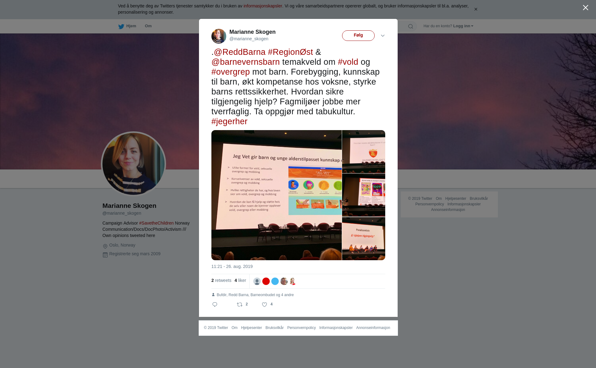 RT @marianne_skogen: .@ReddBarna #RegionØst & @barnevernsbarn temakveld om #vold og #overgrep mot barn. Forebygging, kunnskap til barn, økt kompetanse hos voksne, styrke barns rettssikkerhet. Hvordan sikre tilgjengelig hjelp? Fagmiljøer jobbe mer tverrfaglig. Ta oppgjør med tabukultur. #jegerher https://t.co/GRtBU5a61n