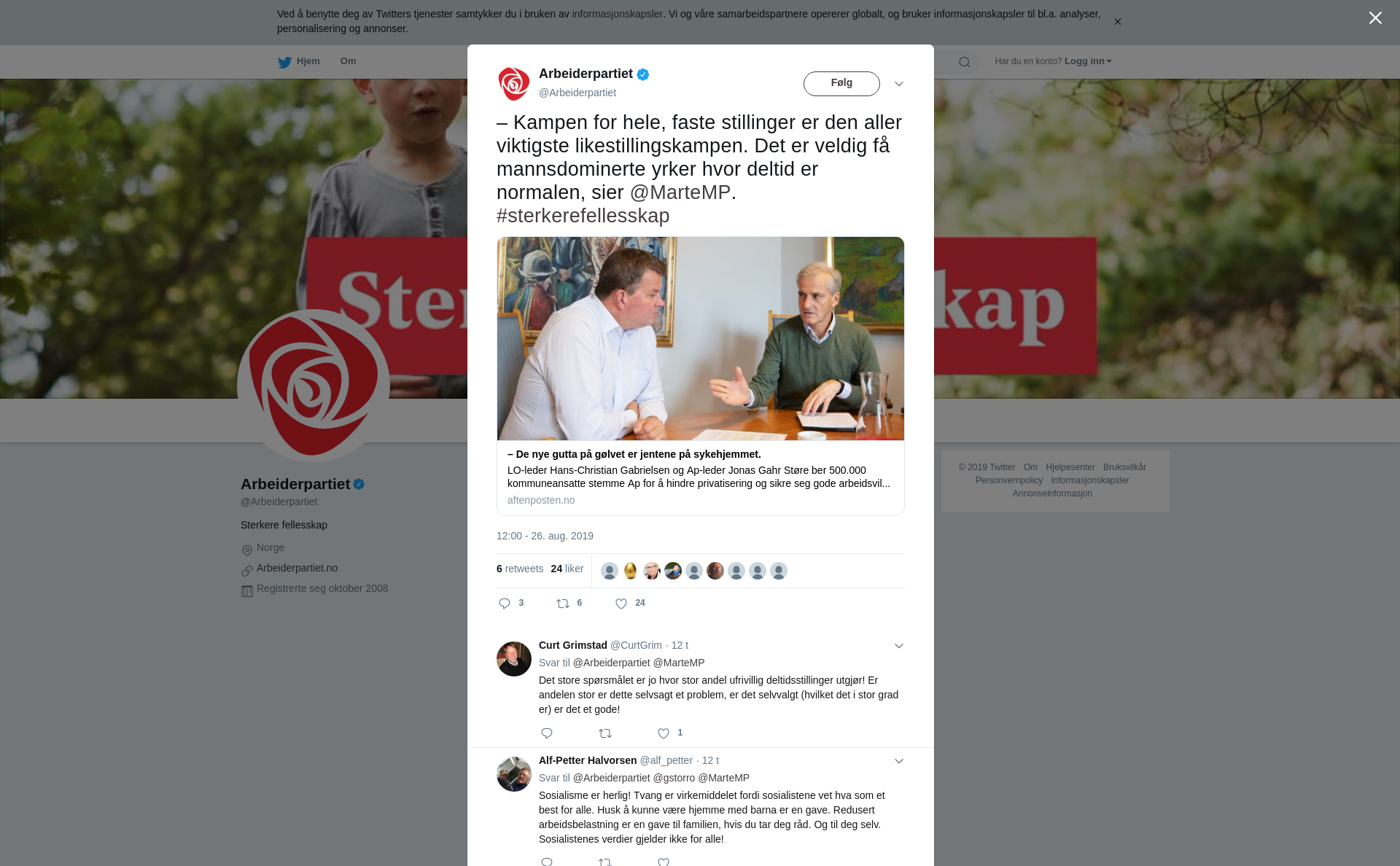 RT @Arbeiderpartiet: – Kampen for hele, faste stillinger er den aller viktigste likestillingskampen. Det er veldig få mannsdominerte yrker hvor deltid er normalen, sier @MarteMP. #sterkerefellesskap https://t.co/FNznOFTsOW