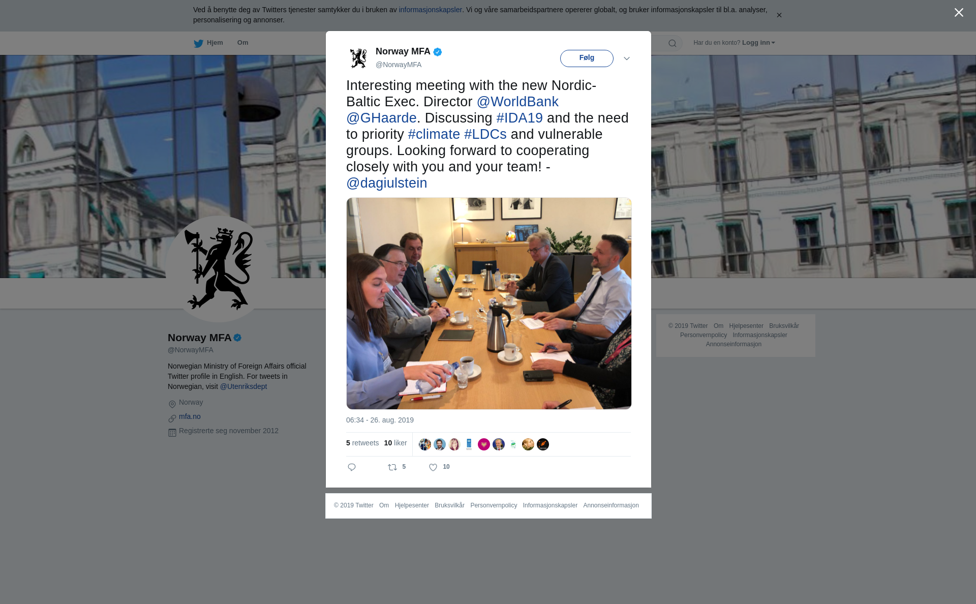 RT @NorwayMFA: Interesting meeting with the new Nordic-Baltic Exec. Director @WorldBank @GHaarde. Discussing #IDA19 and the need to priority #climate #LDCs and vulnerable groups. Looking forward to cooperating closely with you and your team! - @dagiulstein https://t.co/F45oTeusOv