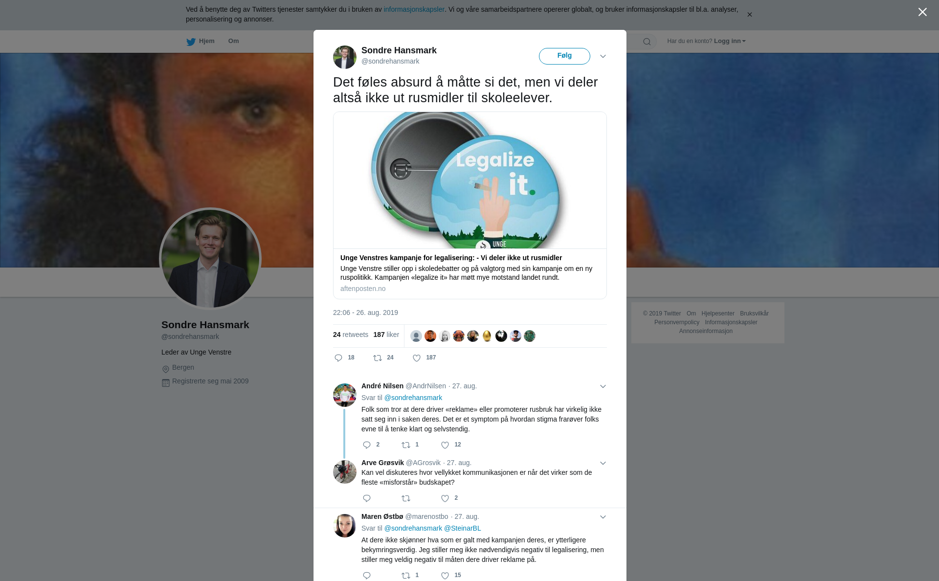RT @sondrehansmark: Det føles absurd å måtte si det, men vi deler altså ikke ut rusmidler til skoleelever. https://t.co/yOgrI4WRjy