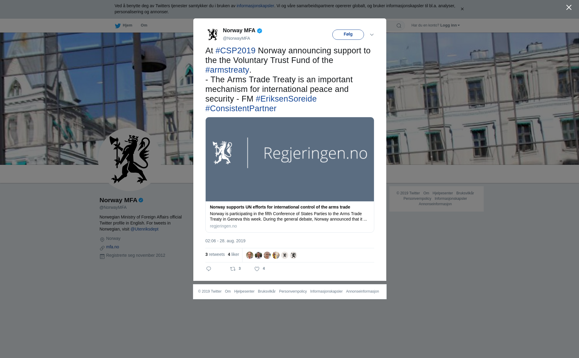 Norway is participating in the fifth Conference of States Parties to the Arms Trade Treaty in Geneva this week. During the general debate, Norway announced that it will be contributing to the Voluntary Trust Fund (VTF).