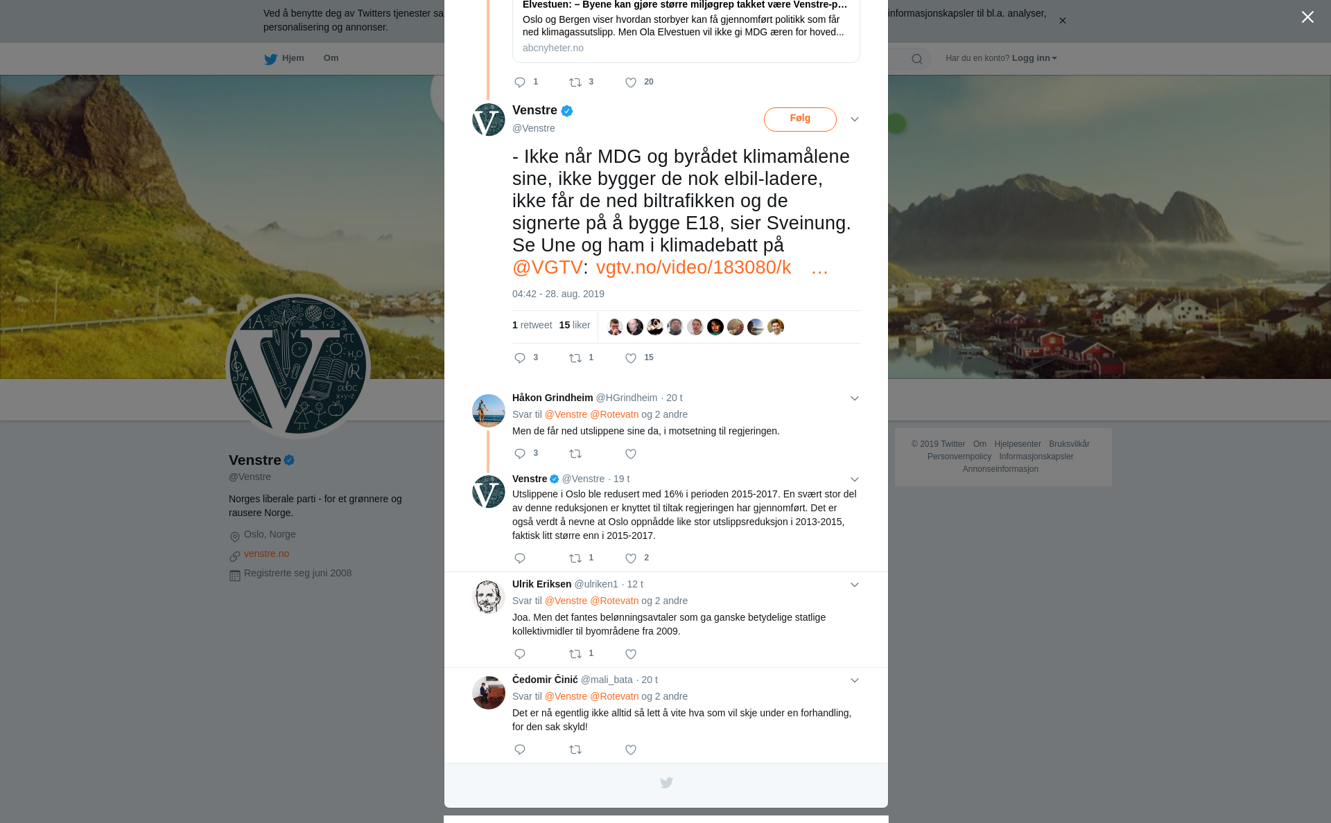 RT @Venstre: @Rotevatn @olaelvestuen - Ikke når MDG og byrådet klimamålene sine, ikke bygger de nok elbil-ladere, ikke får de ned biltrafikken og de signerte på å bygge E18, sier Sveinung. Se Une og ham i klimadebatt på @VGTV: https://t.co/0WHw1S0qIR