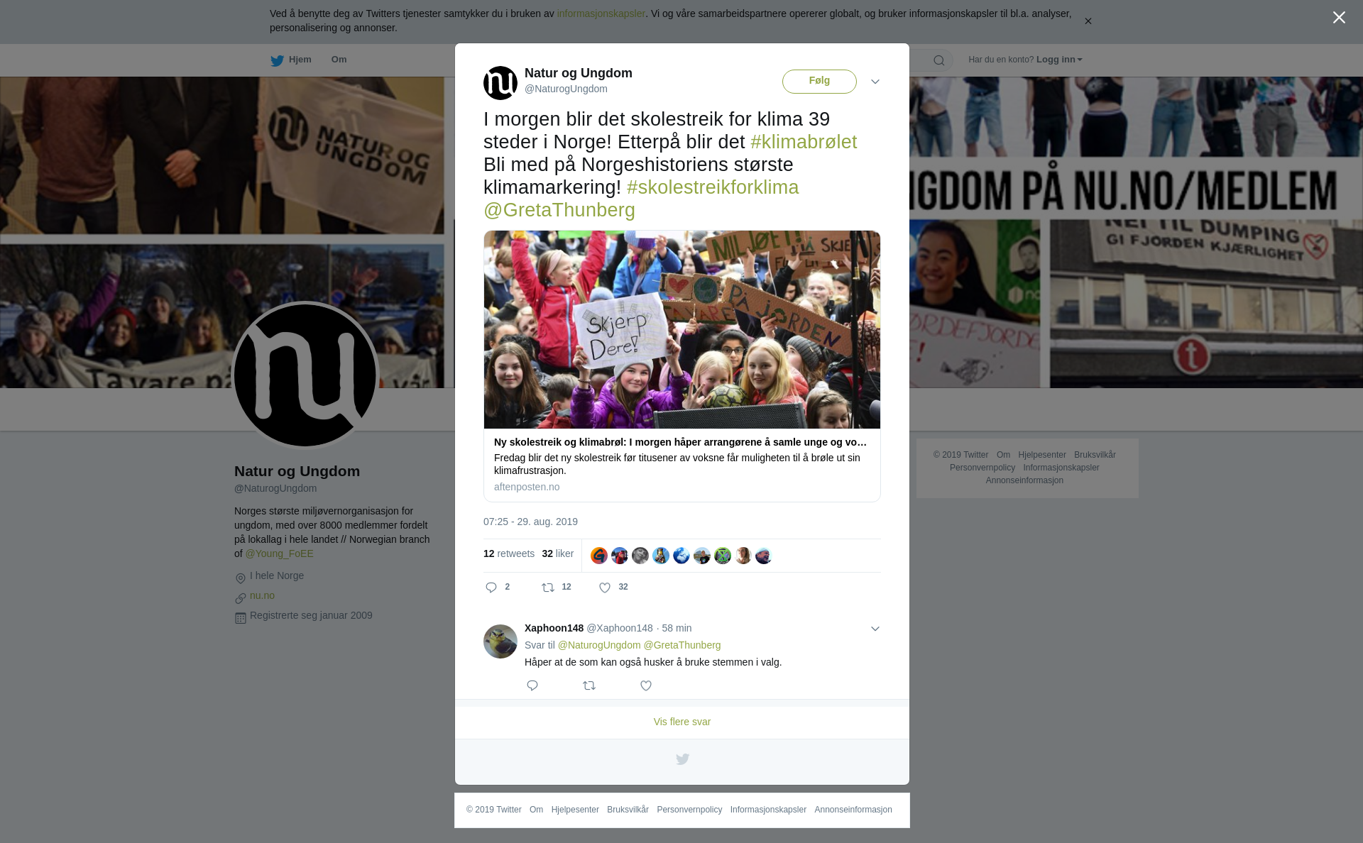 RT @NaturogUngdom: I morgen blir det skolestreik for klima 39 steder i Norge! Etterpå blir det #klimabrølet Bli med på Norgeshistoriens største klimamarkering! #skolestreikforklima @GretaThunberg https://t.co/V4RvfjJB34